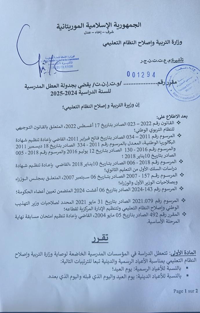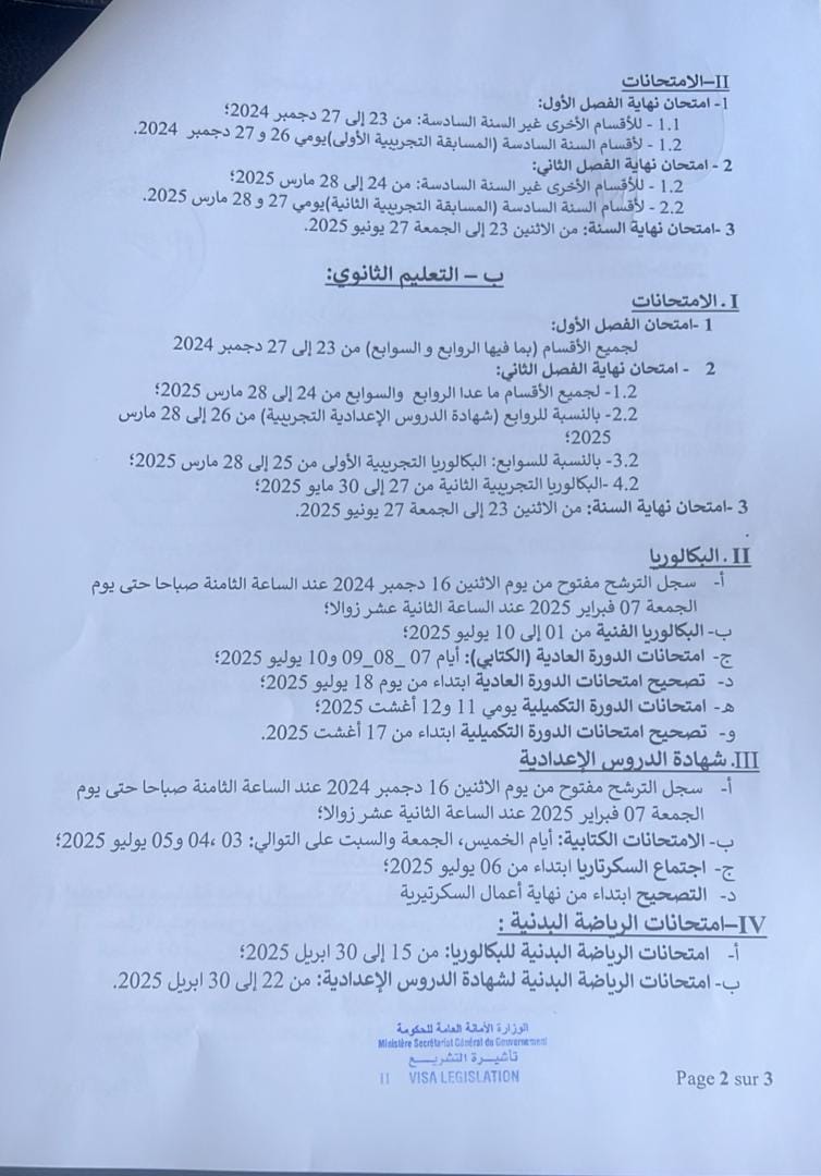 مسابقة الباكلوريا الدورة العادية فقد تقرر تنظيمها 07/08/09/10 يوليو ، والدورة التكميلية 11 و 12 اغشت 2025.