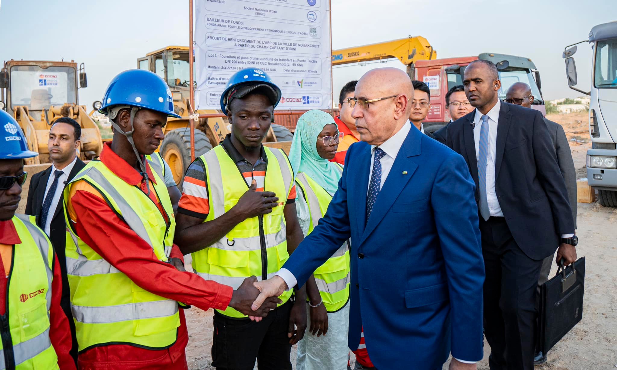 أشرف الرئيس محمد ولد الشيخ الغزواني مساء اليوم الأربعاء على وضع حجر الأساس لمشروع تقوية تأمين تزويد مدينة نواكشوط بالماء الصالح للشرب انطلاقا من حقل آبار إديني.