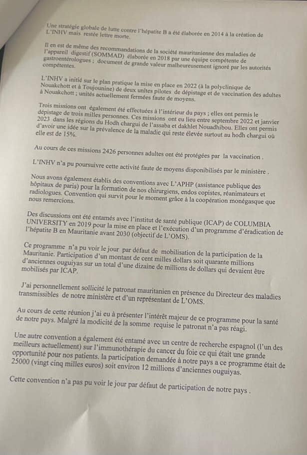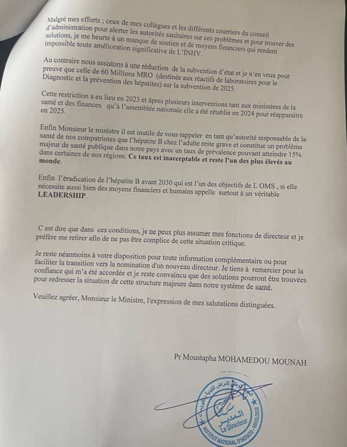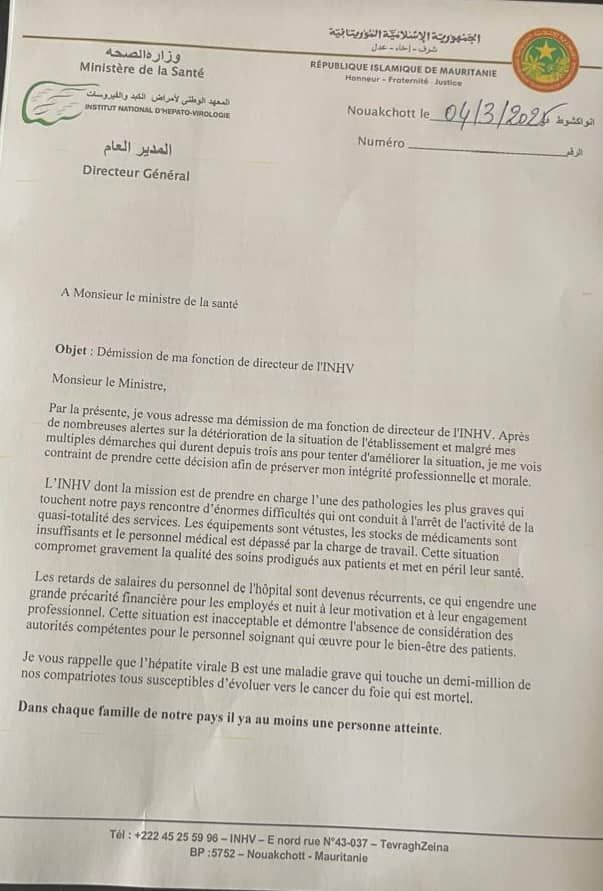 النص الكامل لرسالة استقالة مدير معهد الكبد و الفيروسات بنواكشوط