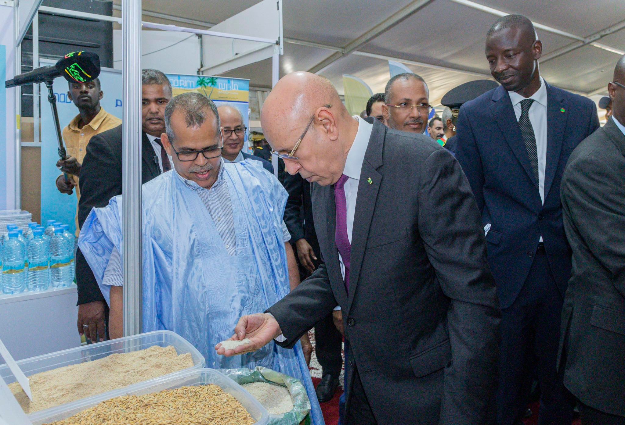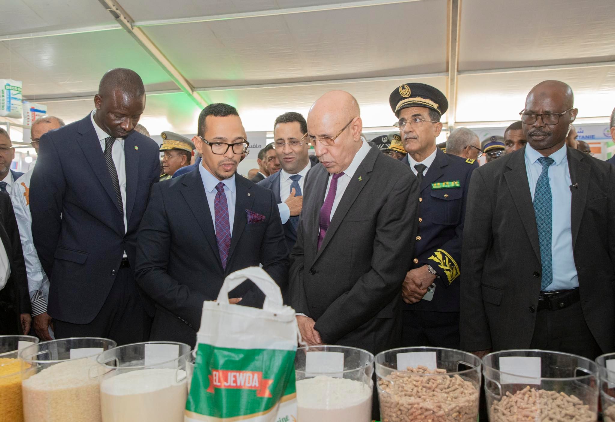 وتفقد الرئيس غزواني أجنحة المعرض المختلفة، ويستمع من القائمين عليها لشروح حول طبيعة المعروضات كل جناح، وإسهامات كل عارض في مجال تخصصه سواء كان بضائع أو خدمات.