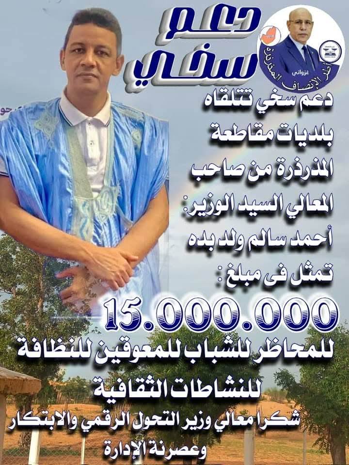 ھذا الاستثناء يمثلھ وزيرنا وأخانا وزير الرقمنة الأستاذ أحمد سالم ولد يد ولد ححام، ھذا الشاب أراد من عطلتھ السنوية مواصلة بناء مجد كانت أسسھ عميقة وراسخة، فھو ابن ححام وزياد، وقد احتمل اللقبان كنوزا دلالية لا يستطيع الكثير سبر غورھما.