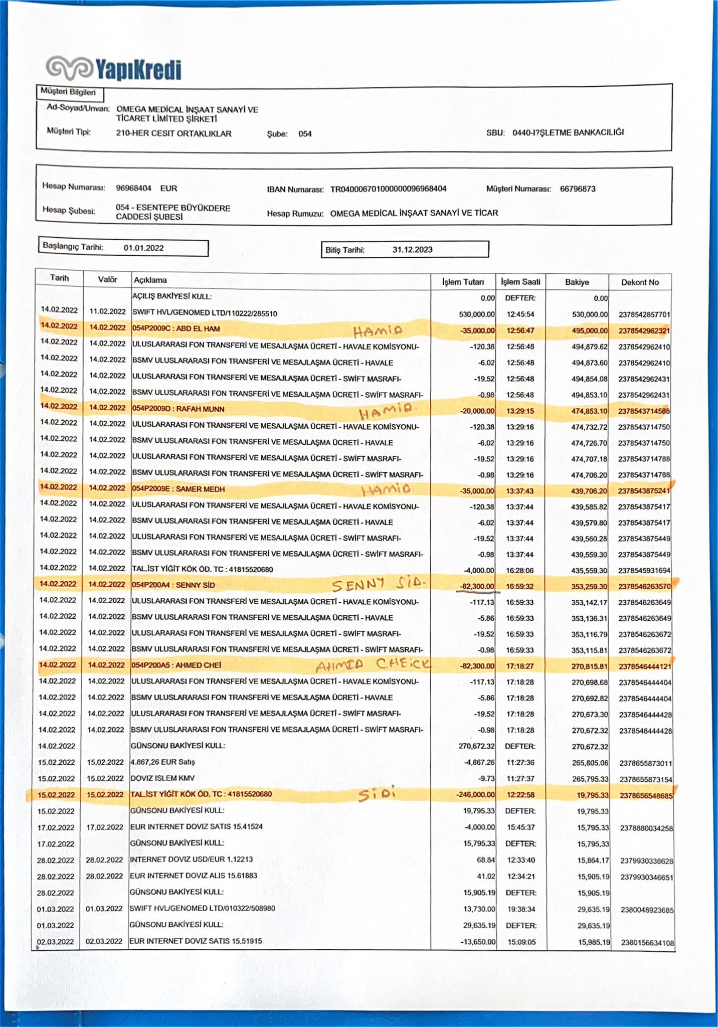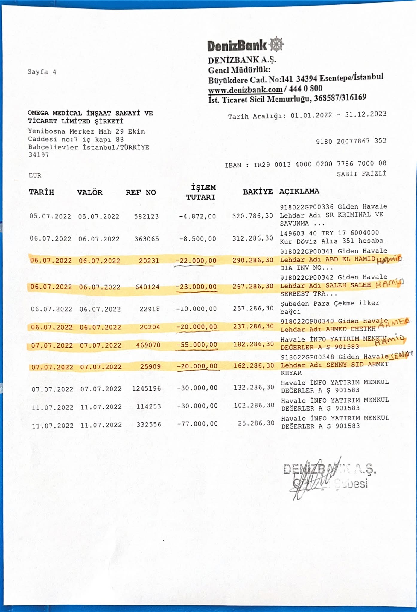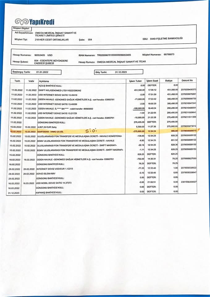 • التحويلات تتم من شركة Genomed (بريطانيا) إلى شركة Omega (تركيا).