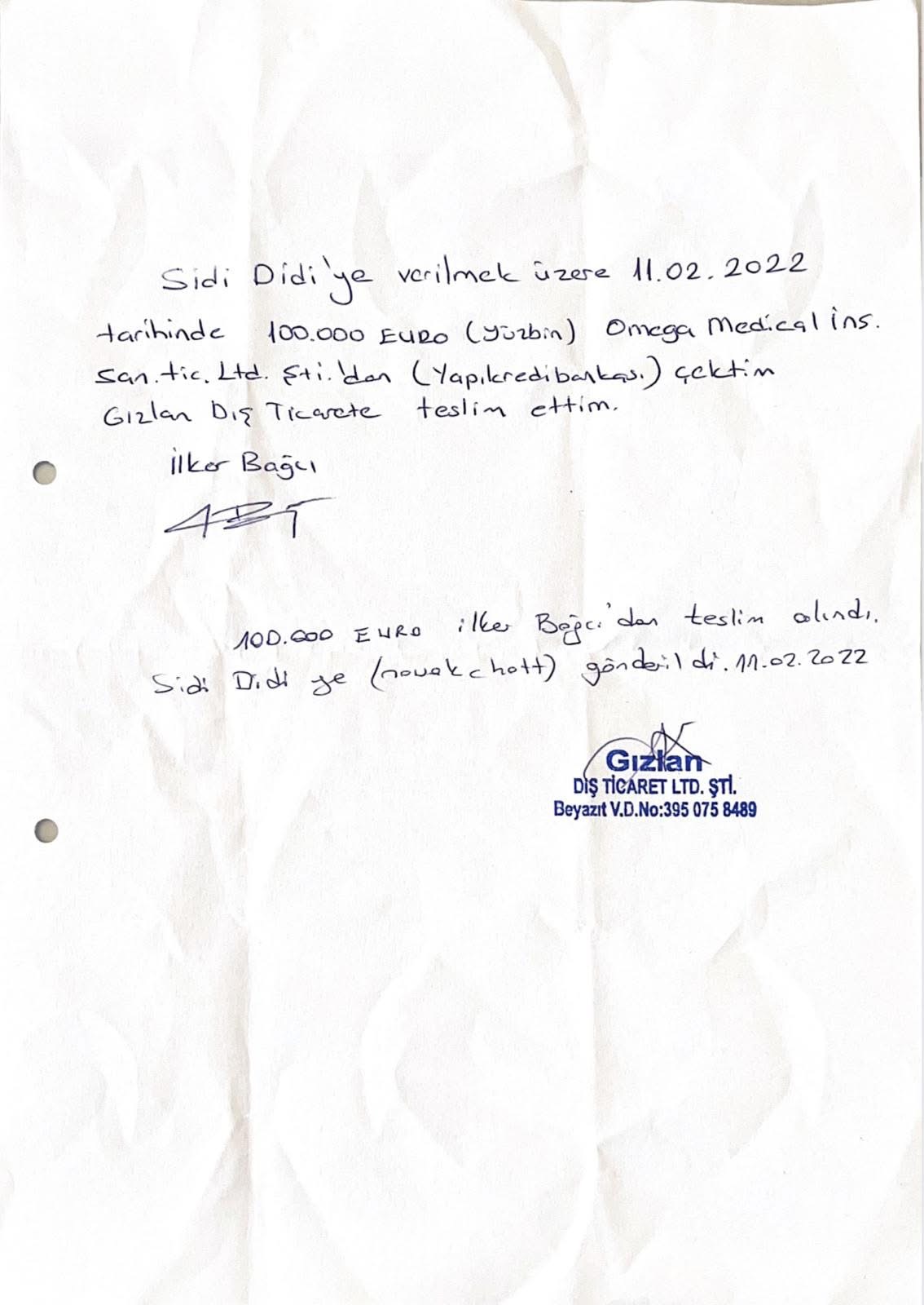 • تُسلّم المبالغ في موريتانيا إلى سيدي ولد الديدي دون توقيع أي إيصال استلام، ويتم الاكتفاء بتأكيد هاتفي من : عبد الحميد ديا نيابةً عنه.