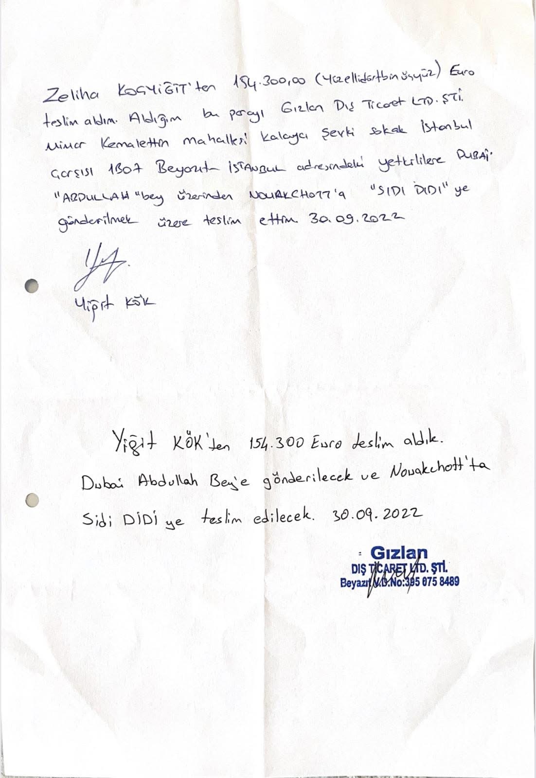 10. تبين الكشوفات حصول كل من أحمد الشيخ والسني سيد احمد خيار على مبلغ قدره 164 ألف يورو، كما تُظهر الإيصالات وكشوف الصرافة حصول سيدي ولد الديدي على ما يقارب 1.5 مليون يورو ونصف مليون دولار أمريكي.