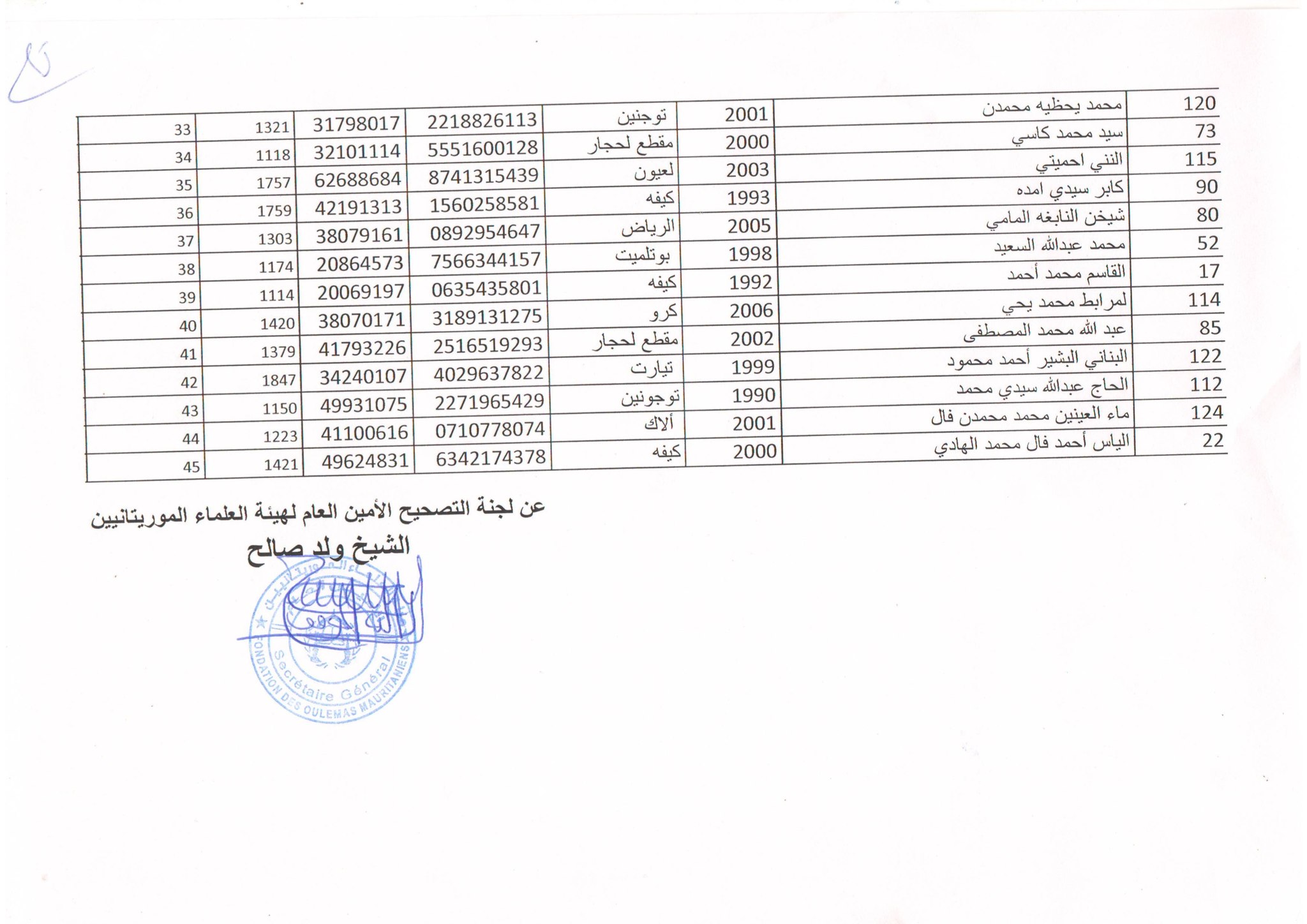 حصلت العلم على محضر نتائج مسابقة جائزة رئيس الجمهورية لحفظ وفهم المتون المحظرية في نسختها السادسة. وهذه لائحة بأسماء الفائزين: