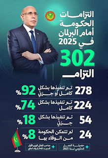 زيادة المداخيل الضريبية والجمركية سنة 2025 بــــ 15,7% عن مستواها سنة 2024، وهو ما يمثل زيادة تناهز 100 مليار أوقية قديمة من دون استحداث أي ضريبة جديدة.