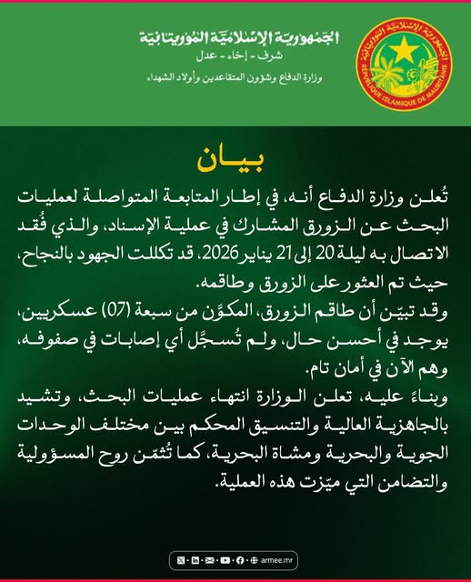 إن المحور الخامس من رؤية وبرنامج صاحب الفخامة رئيس الجمهورية، السيد محمد ولد الشيخ الغزواني، والذي ستتركز عليه جهود الحكومة خلال سنة 2026، يضع في صدارة الأولويات تعزيز قدرات وإمكانات بلادنا على ضمان وترسيخ الأمن والاستقرار، باعتباره هدفا استراتيجيا سياديا، وشرطا لا غنى عنه لتهيئة المناخ الملائم لتنفيذ الرؤية ومجمل السياسات والخطط والبرامج الاقتصادية والاجتماعية والسياسية للدولة.