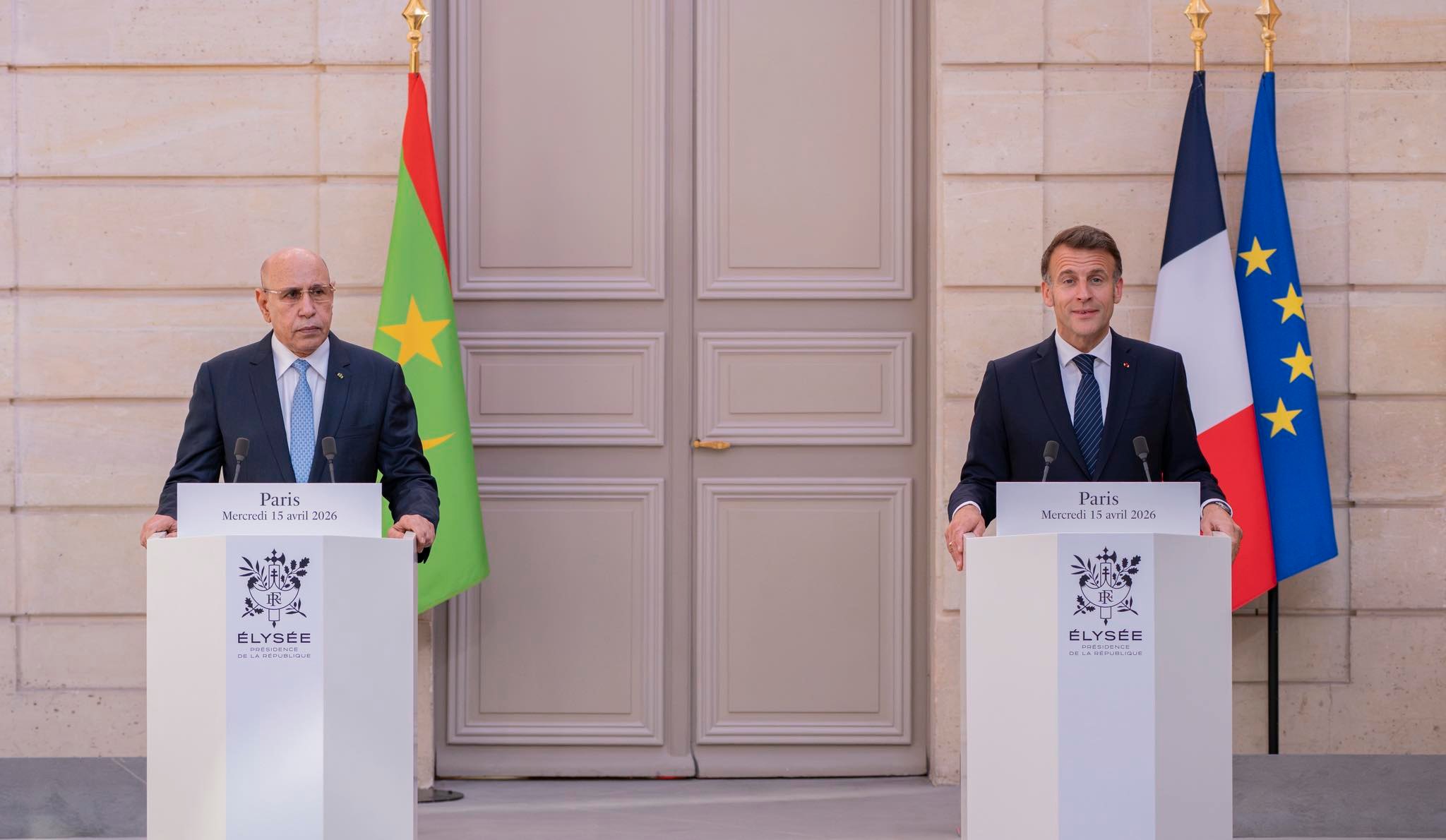 وبعد ذلك أجرى الرئيس محمد ولد الشيخ الغزواني في قصر الإليزيه بالعاصمة باريس مباحثات على انفراد مع الرئيس إيمانويل ماكرون.