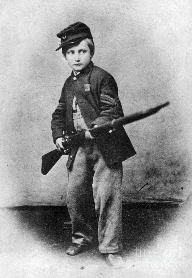 في غضون ذلك، أثرت الحرب الأهلية التي امتدت لسنوات على حياة عدد كبير من الأميركيين وامتدت لتلقي بظلالها حتى على الأطفال، حيث التحق الآلاف منهم بالجيش ليجدوا أنفسهم عالقين على جبهات القتال. وعلى حسب تقديرات تلك الفترة، تراوحت أعمار هؤلاء الأطفال بين 18 و10 سنوات.