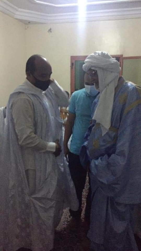 حصلت العلم على صور من الرئيس السابق محمد ولد عبد العزيز أثناء تقديمه لواجب العزاء في أسرة المرحوم محمد السالك الملقب باي بيخ. الصور التقطت لولد عبد العزيز وهو داخل منزل أسرة المرحوم ونشرتها صفحة المنصة على الفيسبوك.