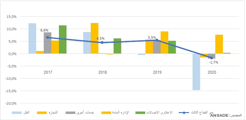 الشكل 4: تطور نمو القطاع الثالث ومساهمة الأنشطة المختلفة