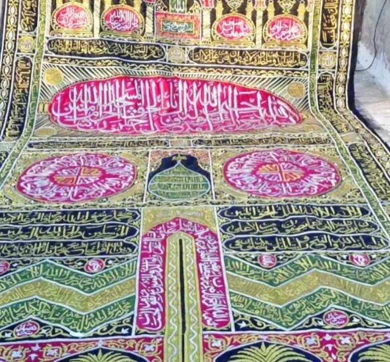 وأوضح أن الكسوة تتوشح من الخارج بنقوش منسوجة بخيوط النسيج السوداء (بطريقة الجاكارد) كتب عليها لفظ "يا الله يا الله"، و"لا إله إلا الله محمد رسول الله" و"سبحان الله وبحمده" و"سبحان الله العظيم" و"يا ديان يا منان"، وتتكرر هذه العبارات على قطع قماش الكسوة جميعها، مشيراً إلى أن عدد قطع حزام كسوة الكعبة المشرفة 16 قطعة، و6 قطع و12 قنديلاً أسفل الحزام، و4 صمديات توضع في أركان الكعبة، و5 قناديل "الله أكبر" أعلى الحجر الأسود، إضافة إلى الستارة الخارجية لباب الكعبة المشرفة.