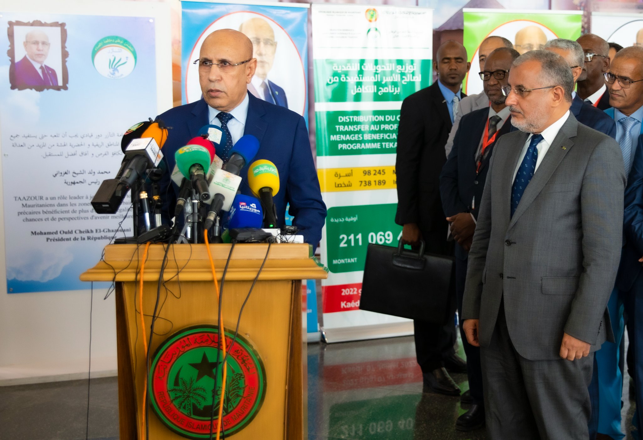 وفي كلمته بالمناسبة قال ولد الغزواني إنه اطلع خلال الزيارة على حجم العمل الذي قامت به تآزر سواء المبالغ المالية التي حولت واستلمتها الأسر المتعففة، أو التأمين الصحي لمئات الآلاف من مواطنينا، أو غيرها من المشاريع الاقتصادية والاجتماعية الهادفة إلى تحسين مستوى معيشة مواطنينا وتنمية موريتانيا.