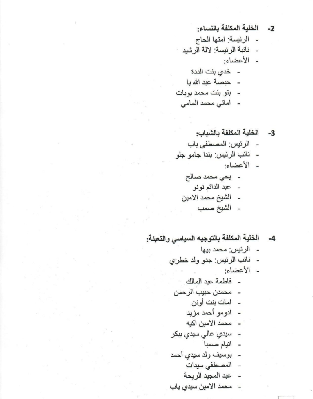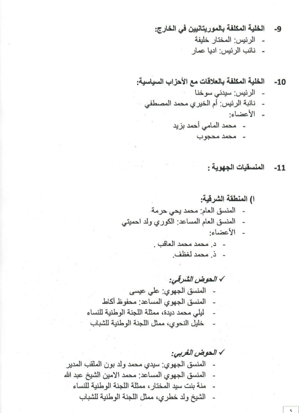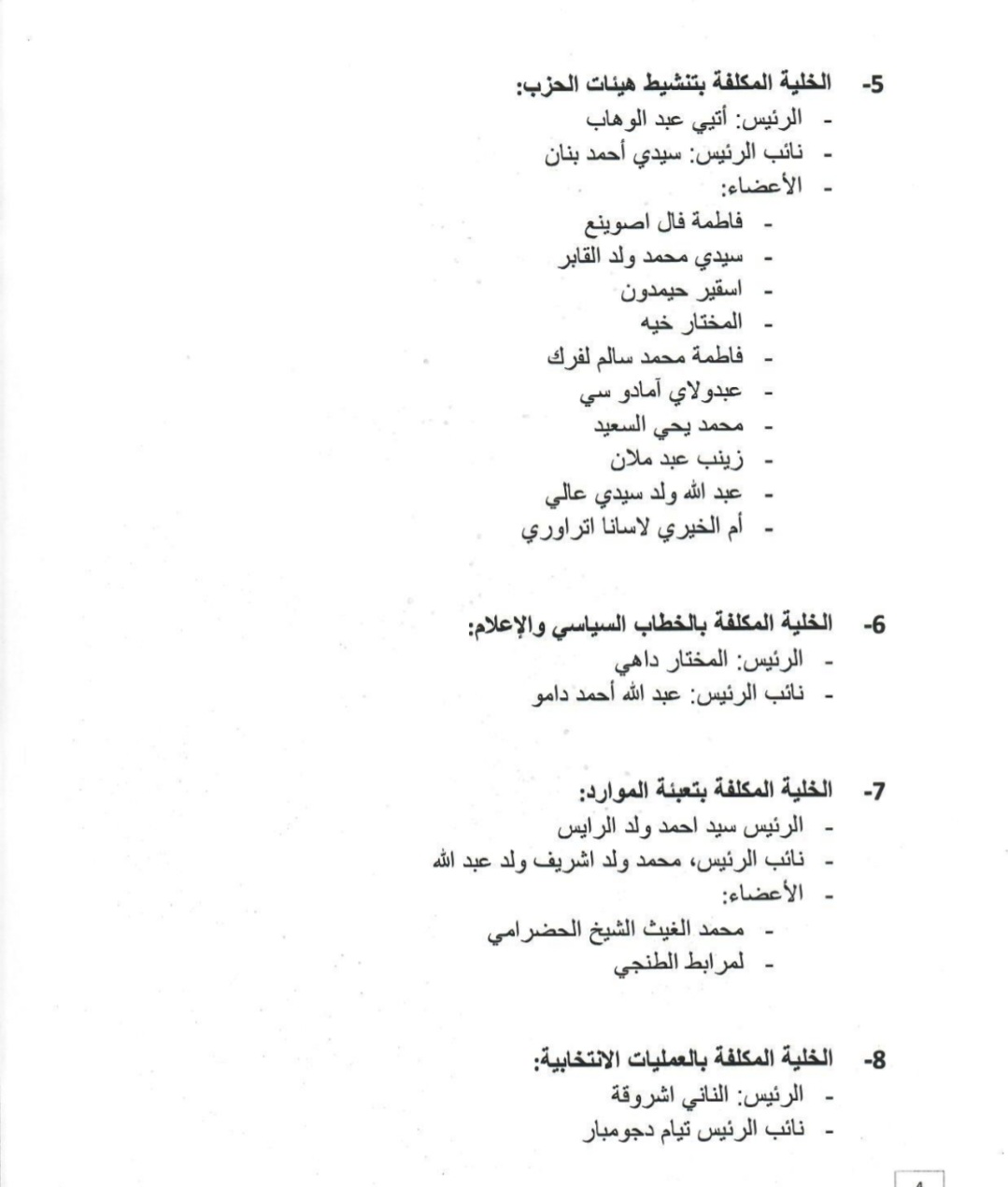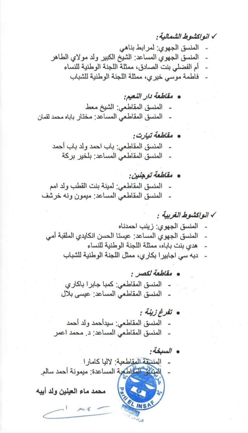 قائمة بأسماء هيئات حزب الإنصاف العليا المكلفة بالتحضير لانتخابات 2023