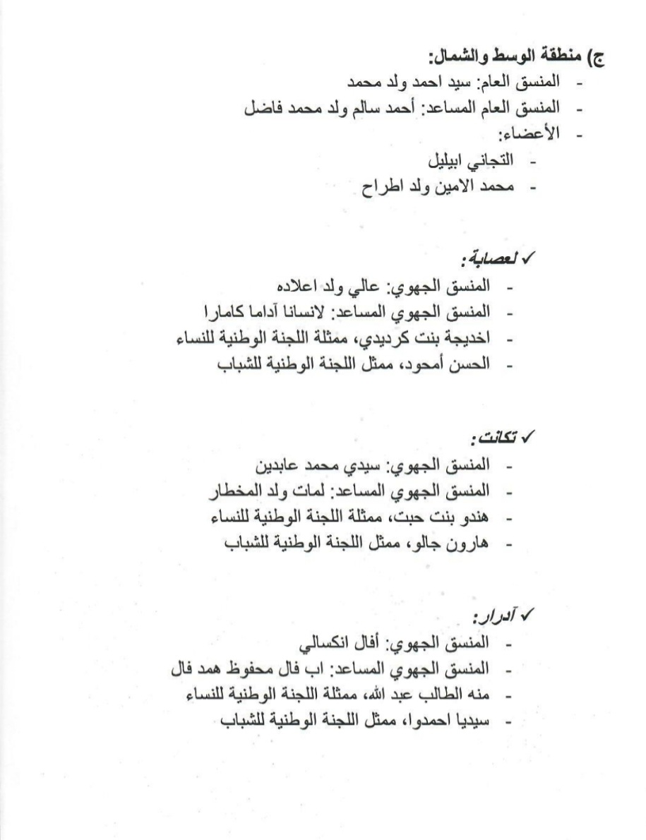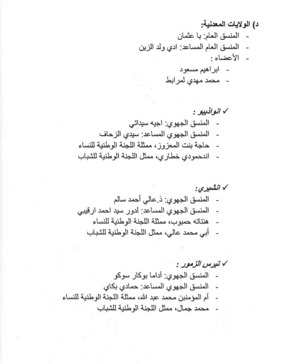 ويترأس اللجنة المركزي الرئيس محمد ماء العينين ولد أييه، وتضم في عضويتها كلا من: