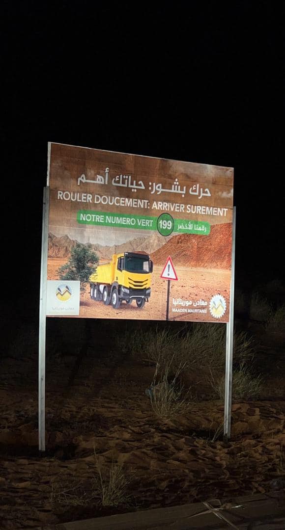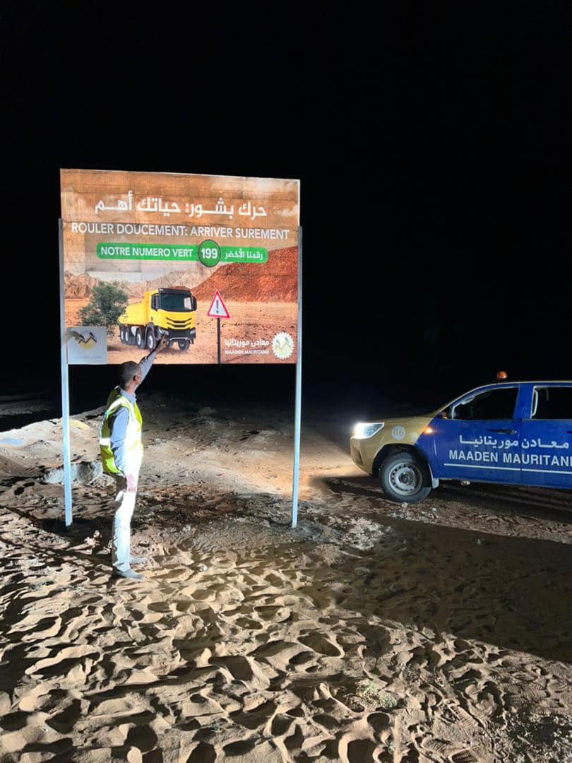 أعلنت شركة معادن موريتانيا أن فرقة السلامة الميدانية التابعة لها أنهت عمليات تثبيت مجموعة من الإشارات التحسيسية والمرورية على طريق الشيخ سيد امحمد الكنتي الرابط بين تازيازت وتيجريت.