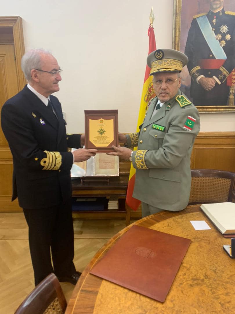 استقبل الفريق مختار بله شعبان قائد الأركان العامة للجيوش الموريتاني من طرف قائد أركان الجيش الإسباني الآميرال تيودورو لوبيز كالديرون في مقر قيادة الجيش الإسباني خلال اليوم الثاني من زيارته للملكة الإسبانية.