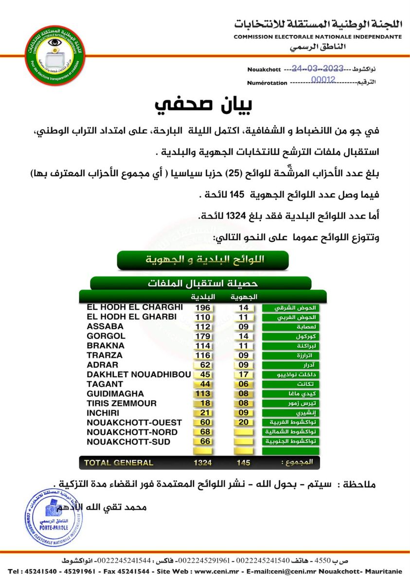 – داخلت نواذيبو: 17 لائحة جهوية و45 لائحة بلدية،