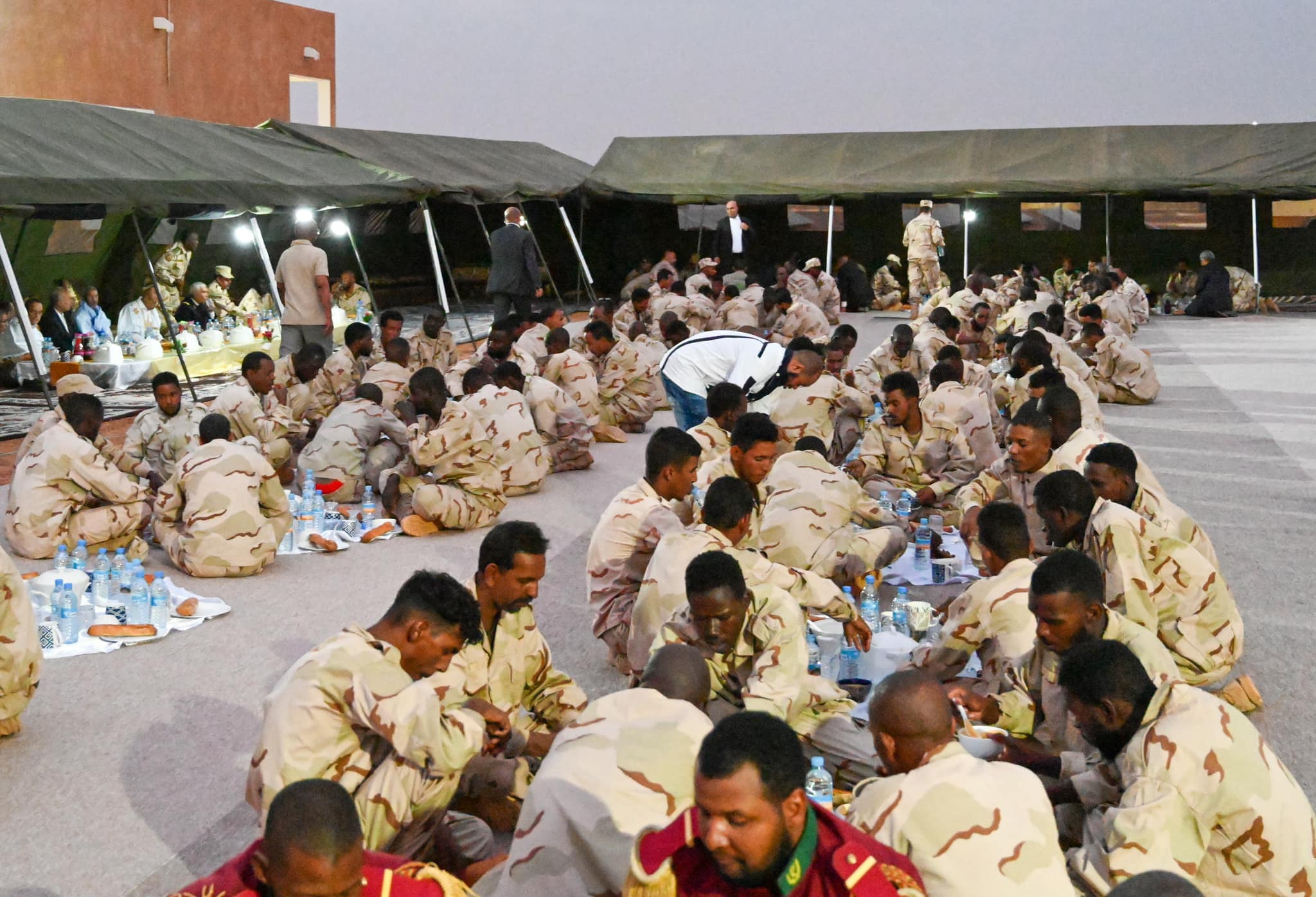 صور من إفطار الرئيس غزواني مع الجنود وضباط الصف والضباط المرابطين على الحدود مع مالي