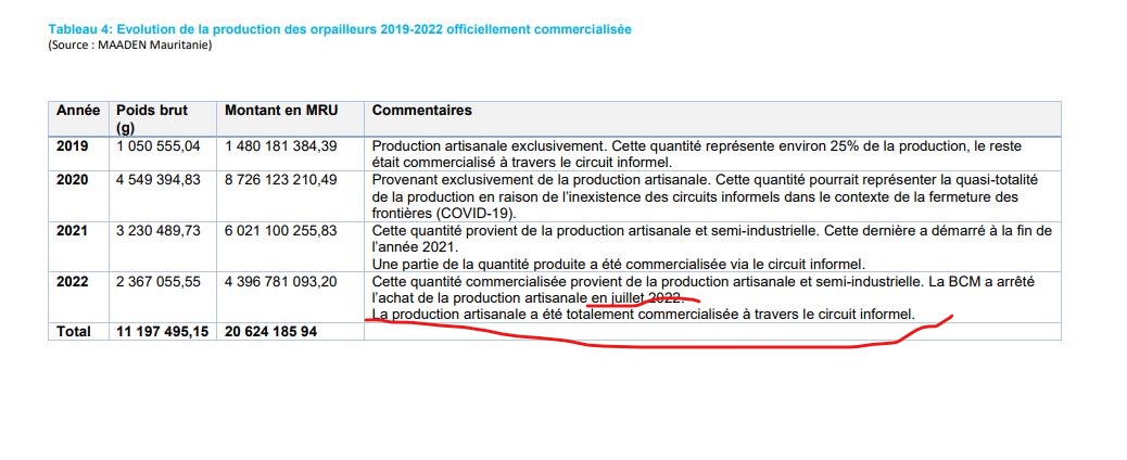 الصورة المرفقة من تقرير مبادرة الشفافية في مجال الصناعات الاستخراجية في موريتانيا لسنة 2022
