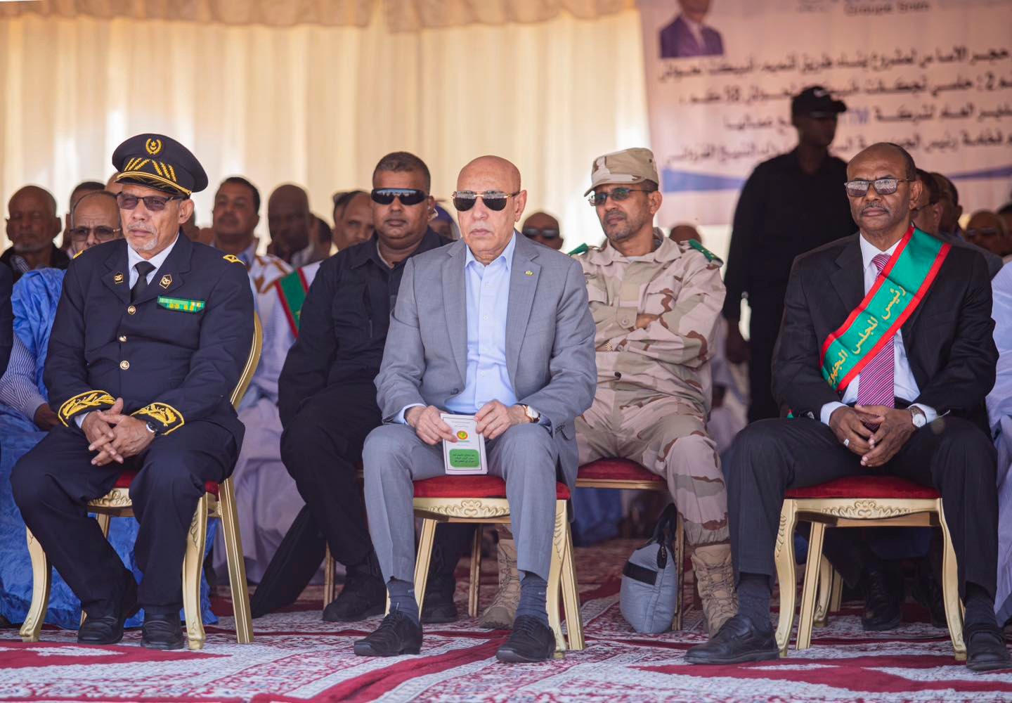 أشرف مساء اليوم الخميس الرئيس محمد ولد الشيخ الغزواني بقرية آشميم بمقاطعة النعمة على وضع حجر الأساس لمشروع بناء الطريق المعبد اشميم - انبيكت لحواش.