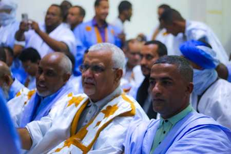 الصورة ملتفطة لمرشح العمدة السابق في مقطعة المذرذرة الشاب أحمد أباك في تظاهرة لأطر المذرذرة تحضيرا لزيارة الرئيس غزواني لولاية الترارزة.