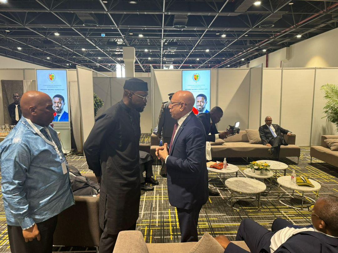 وعلى هامش حفل تنصيب الرئيس السنغالي المنتخب التقى الرئيس محمد ولد الشيخ الغزواني بزعيم المعارضة السنغالية الفائز حزبه بالانتخابات الرئاسية في السنغال عثمان سونكو.