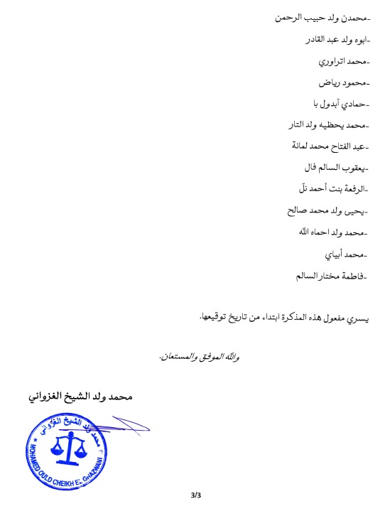 أصدر اليوم الاثنين المترشح للانتخابات الرئاسية محمد ولد الشيخ الغزواني مذكرة تعيين 48 مستشارا بحملته الانتخابية.