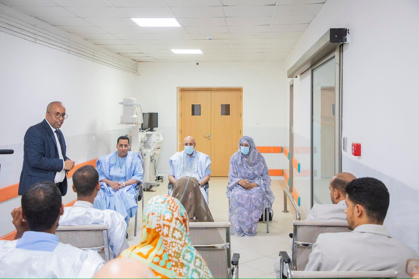 قام مساء اليوم الأحد الرئيس الموريتاني محمد ولد الشيخ الغزواني بزيارة تفقد واطلاع ومناصرة للفريق الطبي الموريتاني الجزائري الذي يجري عمليات زرع كلى بالمركز الوطني لأمراض القلب لأول مرة على المستوى الوطني.