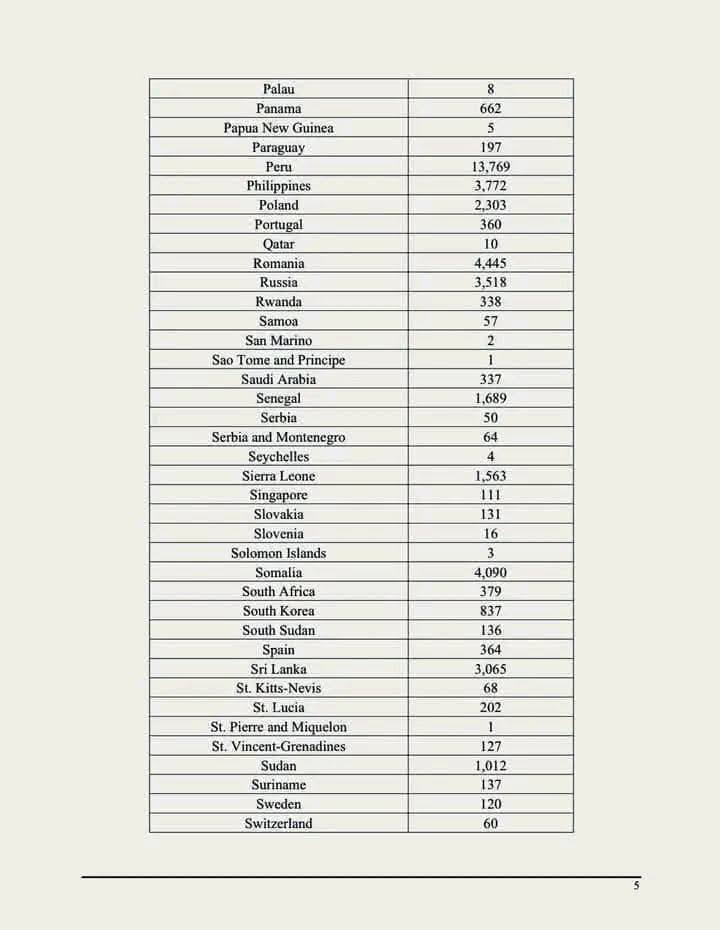 أكدت وثائق صادرة عن مصلحة الهجرة الأمريكية حصلت عليها وكالة العلم الإخبارية ترحيل الولايات المتحدة الأمريكية 3822 موريتاني في المرحلة الأولى.