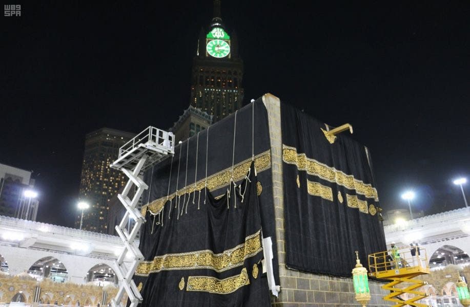 وتم استبدال كسوة الكعبة المشرفة القديمة بكسوة جديدة، بإشراف ومتابعة الرئيس العام لشؤون المسجد الحرام والمسجد النبوي الشيخ الدكتور عبدالرحمن السديس.