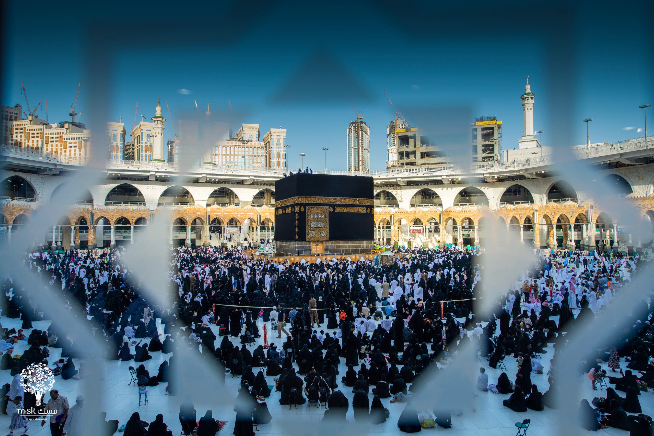 مشهد يتكرر كل عام حيث ينزل عدد من الأسر مع أطفالهم في صحن الكعبة ليسدوا الفراغ الذي يتركه الحجاج وهم يقفون في صعيد عرفات.