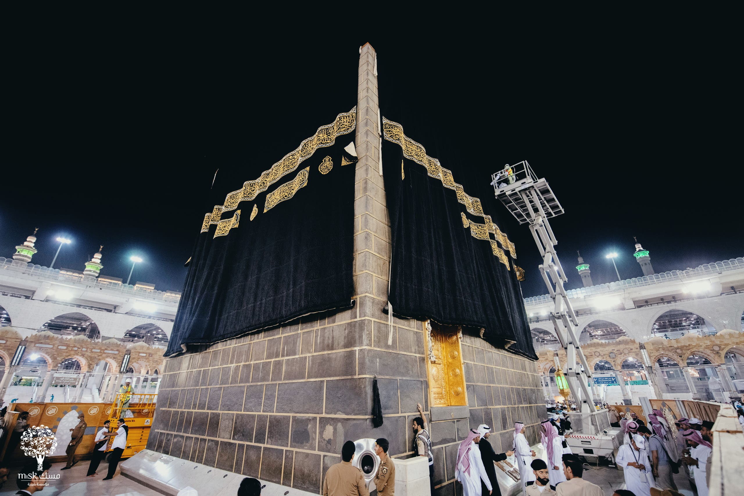 وتتاح الفرصة للعديد من الصغار لتقبيل جدران الكعبة العارية أثناء تبديل الكسوة فجر يوم عرفة، وتستمر مراسم التبديل لقرب صلاة العصر، في مشهد يرقبه أهالي مكة كل عام.