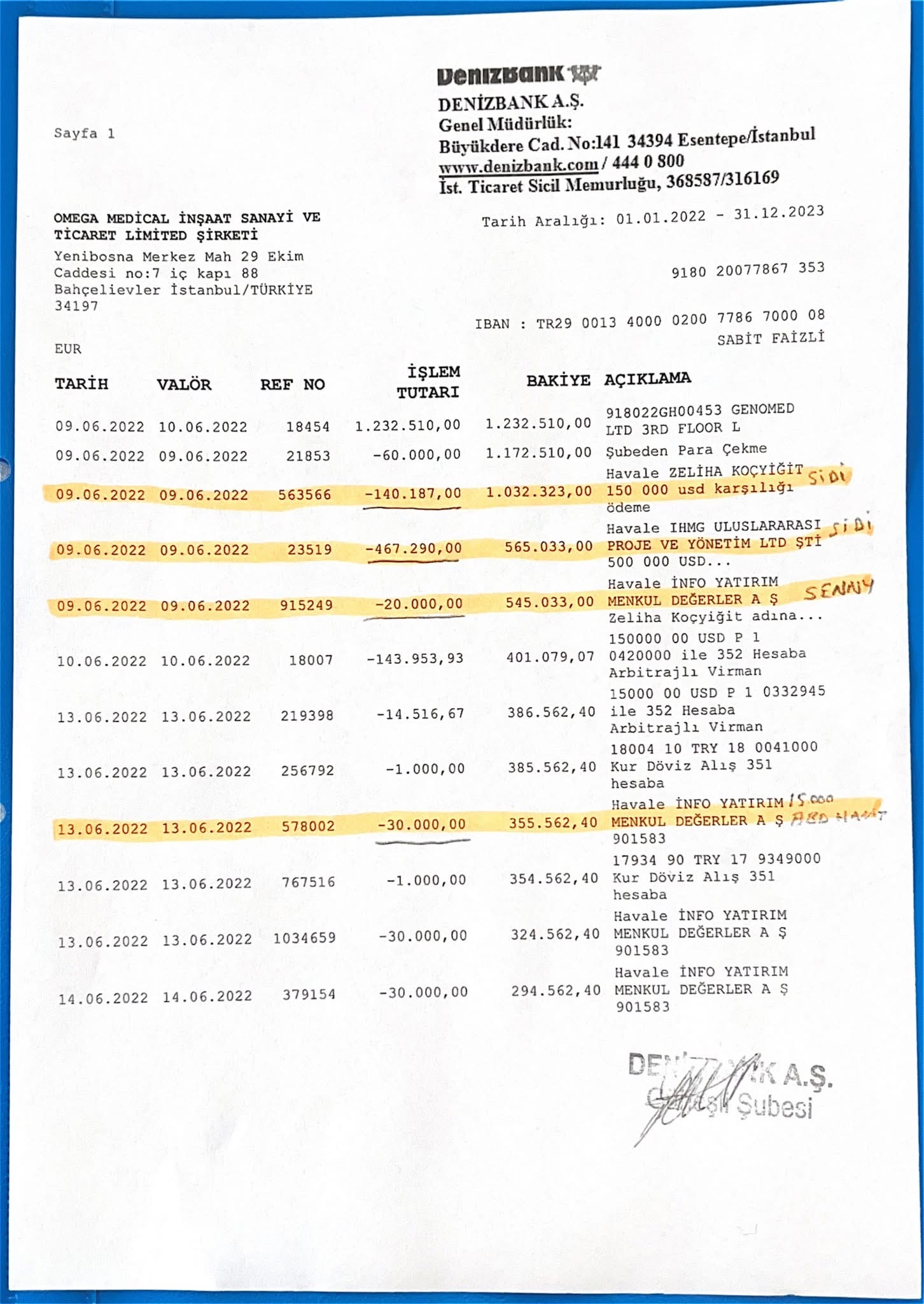 • التحويلات تتم من شركة Genomed (بريطانيا) إلى شركة Omega (تركيا).