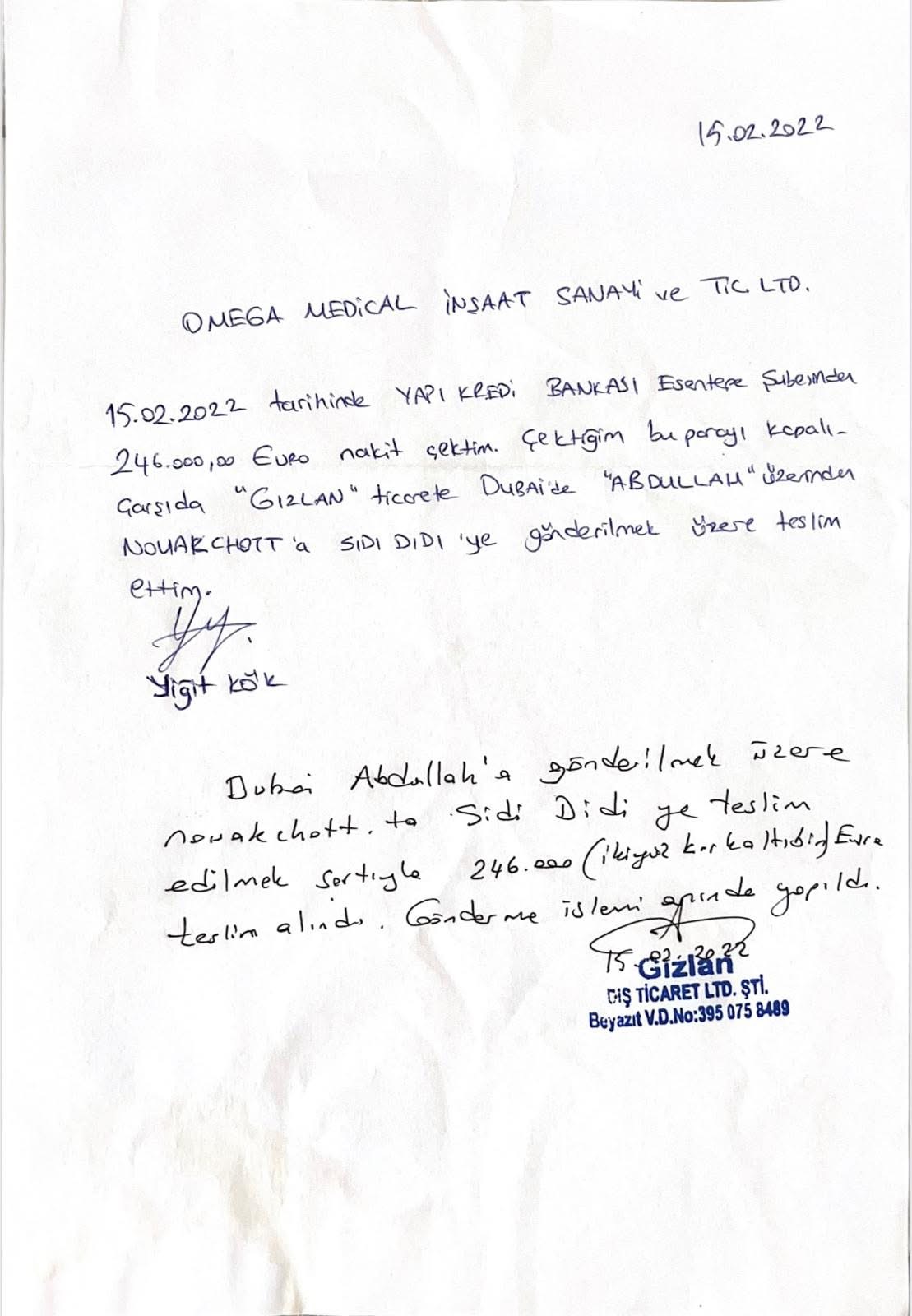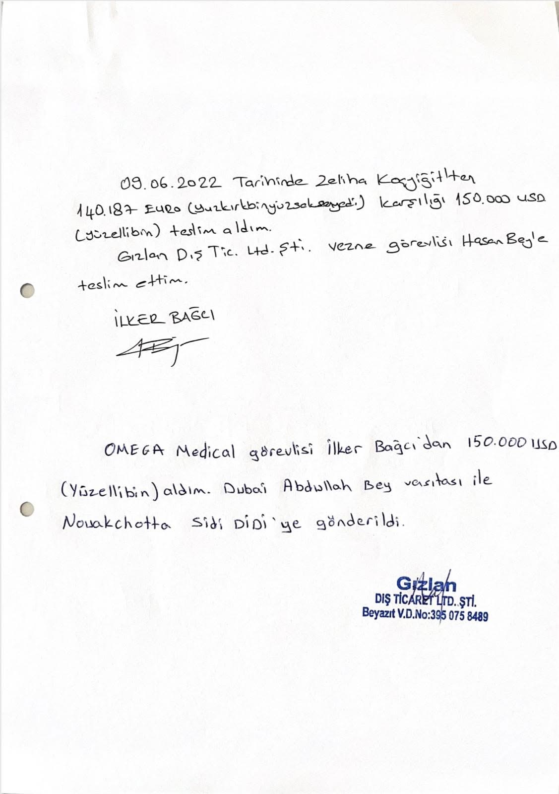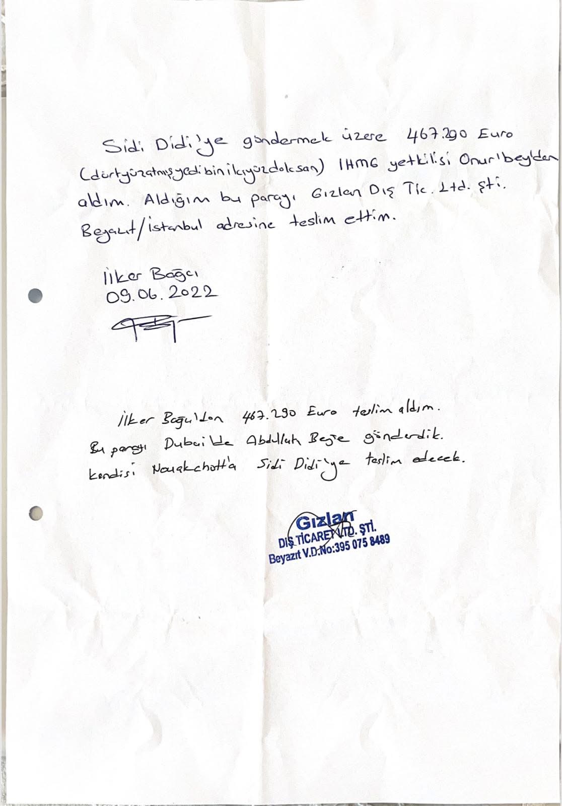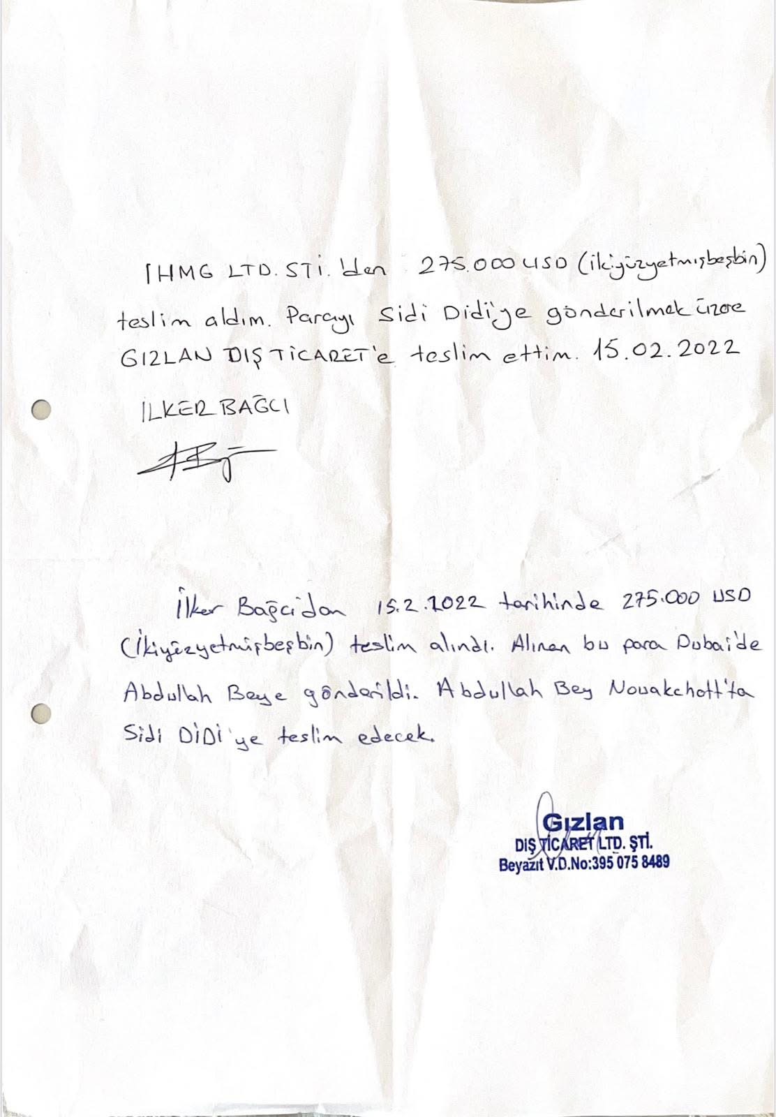 • تُسلّم المبالغ في موريتانيا إلى سيدي ولد الديدي دون توقيع أي إيصال استلام، ويتم الاكتفاء بتأكيد هاتفي من : عبد الحميد ديا نيابةً عنه.