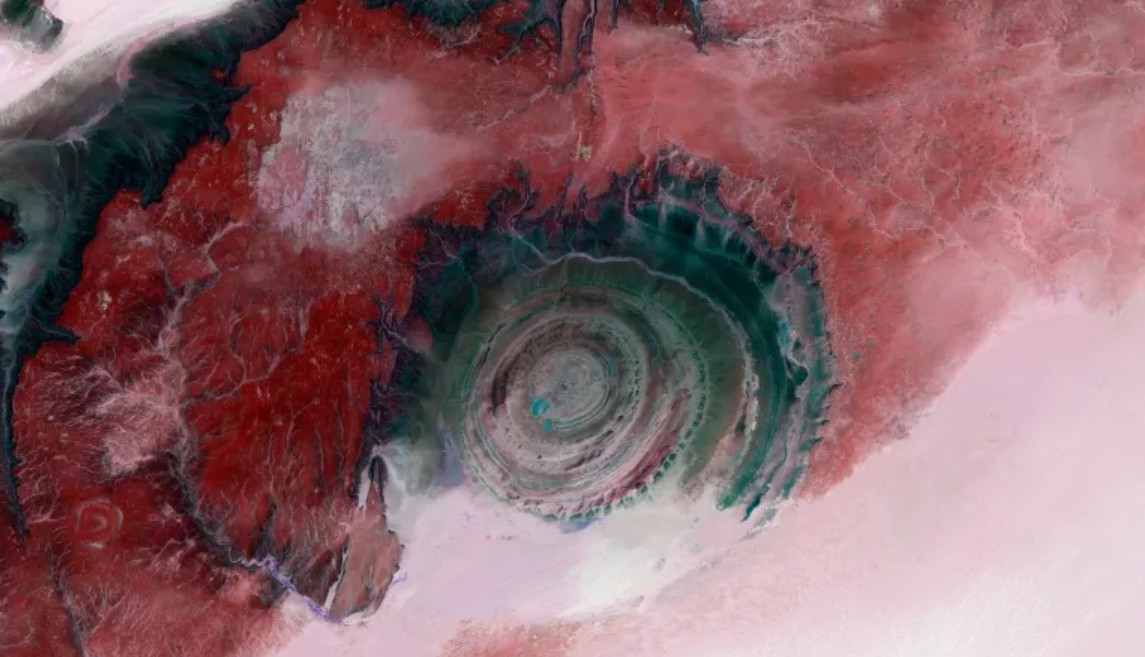 التقطت مهمة كوبرنيكوس سنتينل-2 مشهدا لأكثر الظواهر الجيولوجية إدهاشا في الصحراء الكبرى، وهي بنية الريشات في إقليم آدرار شمال موريتانيا. من الفضاء تبدو كأنها "عين" هائلة تحدّق للأعلى، من بحر من الرمال الذهبية، ولذلك اشتهرت باسم عين الصحراء أو عين أفريقيا.