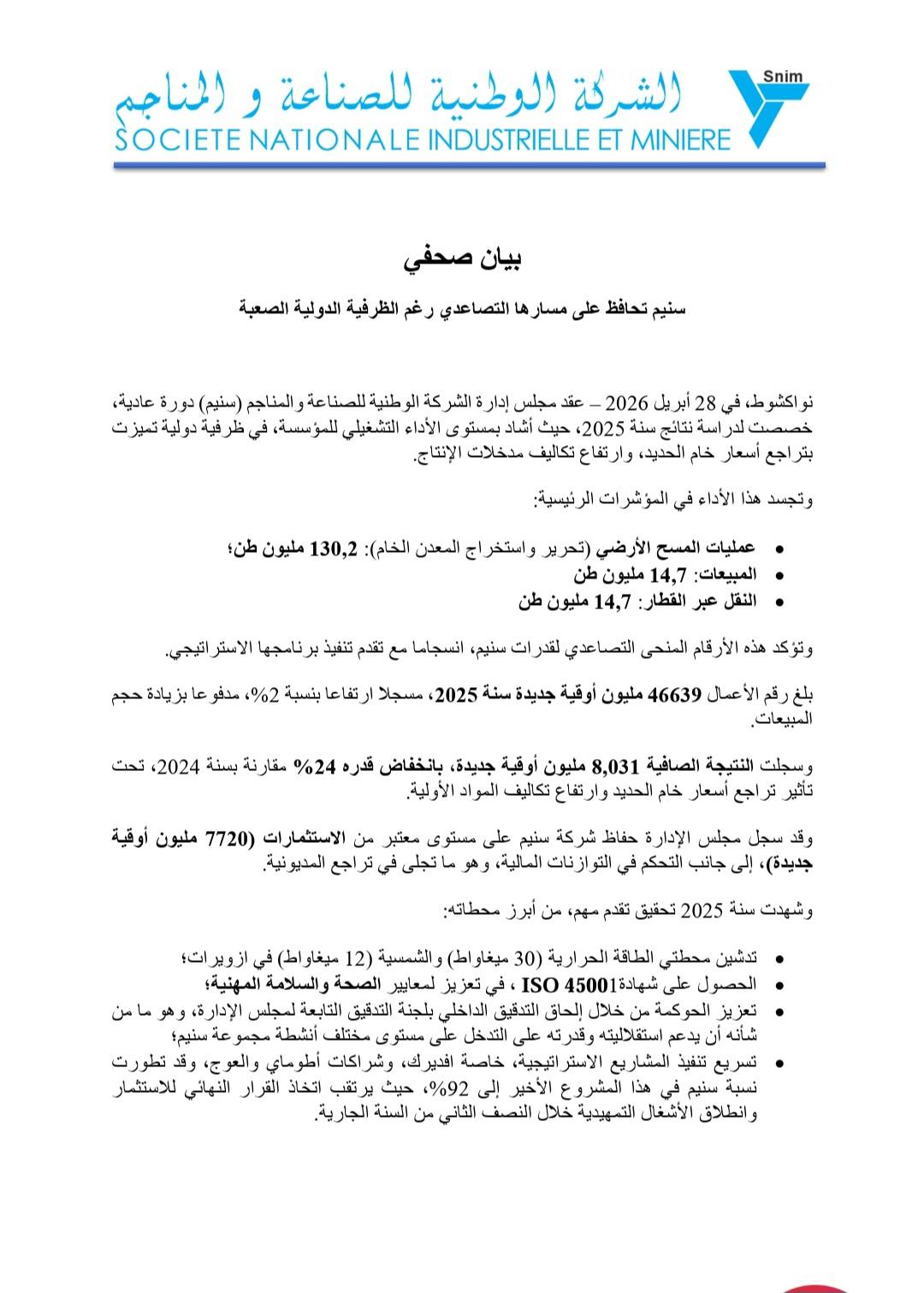 – منح معتبرة: 7 رواتب للعمال مع 10000 أوقية جديدة، و6 رواتب لفئة الإشراف (M1 وM2) مع 10000 أوقية جديدة، و5 رواتب للأطر.