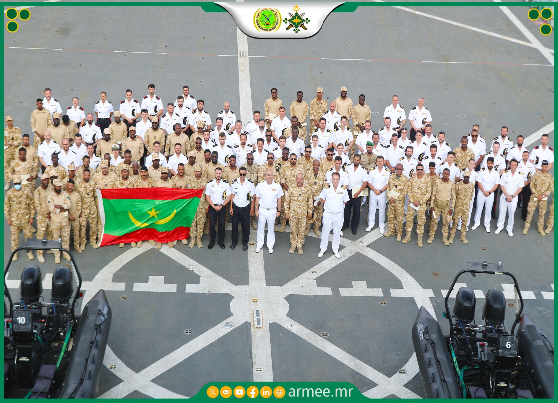 استقبلت البحرية الوطنية الموريتانية بميناء نواكشوط السفينة البرمائية التابعة للبحرية الإسبانية ESPS Galicia، وذلك خلال في إطار تعزيز علاقات التعاون العسكري والبحري بين موريتانيا وإسبانيا، في الفترة من 15 إلى 24 أبريل 2026.