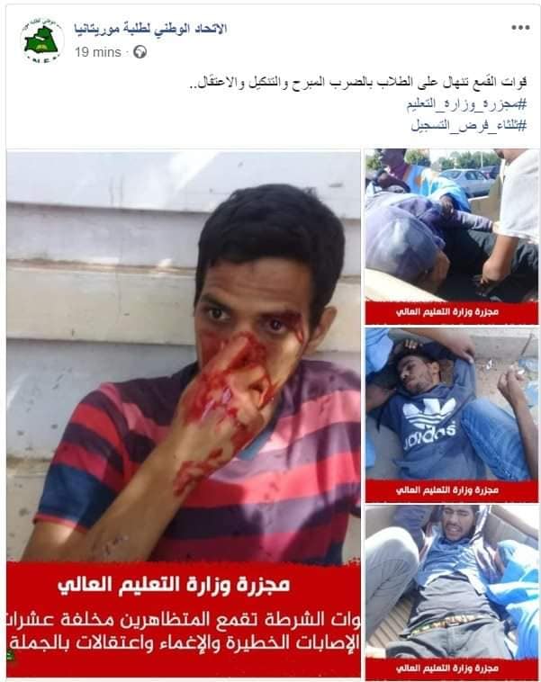 وقالت مصادر طلابية بنواكشط إن الطلاب الذين تعرضوا للقمع كانت إصابات البعض منهم بلغية، ومن أبرز المصابين :