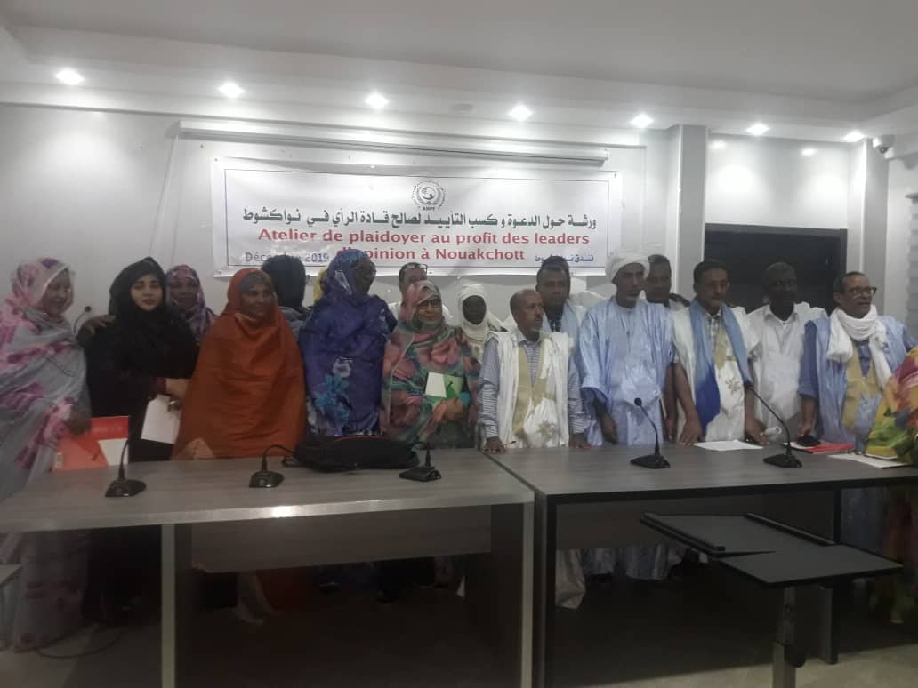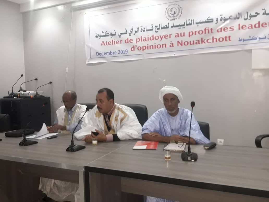نظمت الجمعية الموريتانية لترقية الأسرة مساء الخميس 12 دجمبر 2019 ورشة حول الدعوة وكسب التأييد لصالح قادة الرأي في نواكشوط في فندق نواكشوط بتفرغ زينه.