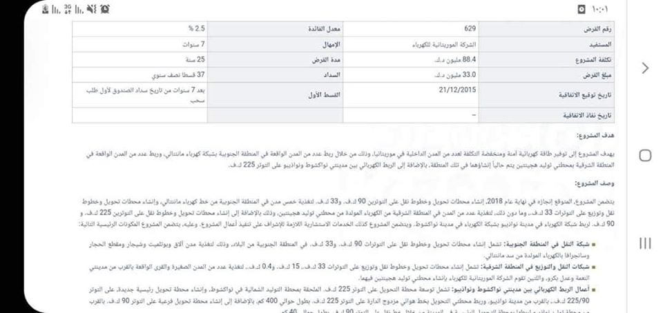في إطار الإستراتيجية الوطنية للولوج للكهرباء ومحورية الطاقة في نمو الاقتصاد الوطني قررت الحكومة تنفيذ مشروع تطوير انظمة الكهرباء في المنطقة الشرقية وانتدبت الشركة الوطنية للكهرباء فريق عمل وقدرت كلفته ب 18 مليار أوقية قديمة وحصلت نهاية 2015 على قرض رقم 629 بمبلغ 33 مليون دينار كويتي حوالي 38 مليار أوقية من الصندوق العربي للإنماء الاقتصادي والاجتماعي للمساهمة فى تمويل 3 مشاريع للطاقة من ضمنها هذا المشروع الذي تقسيمه فنيا إلى 4 محاور lots وتم يوم 16/4/2016 توقيع واشعار بداية العمل في المحور الأول lot1 مع