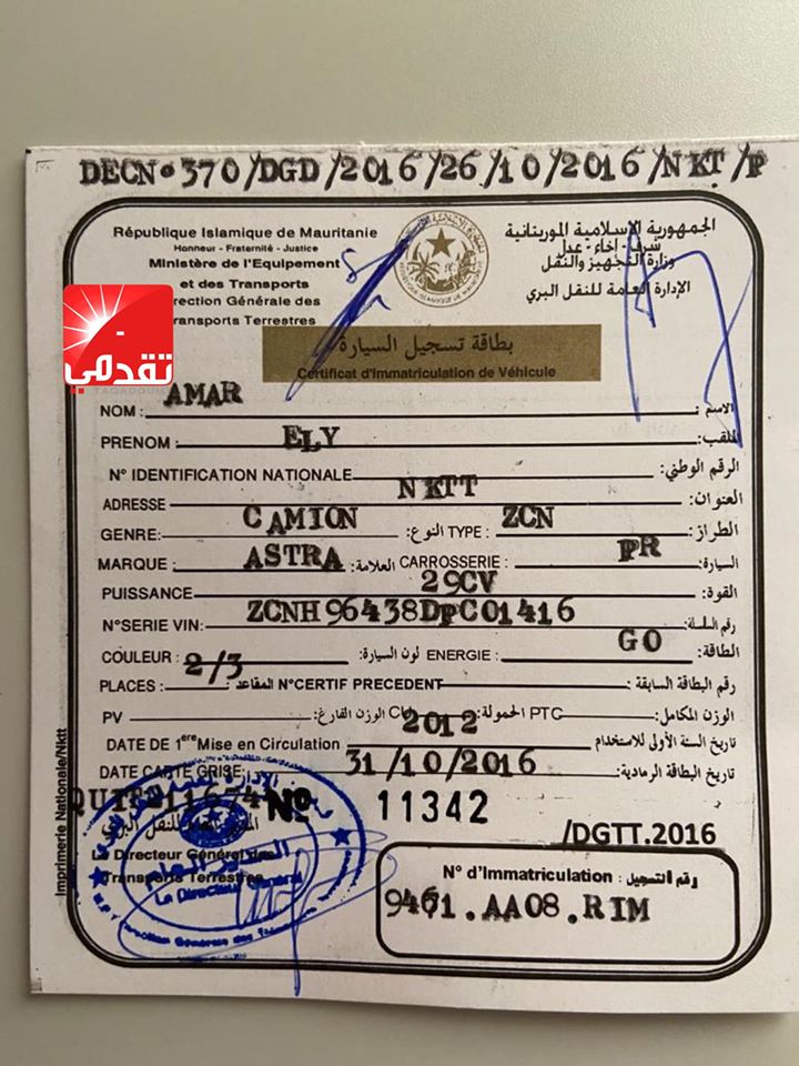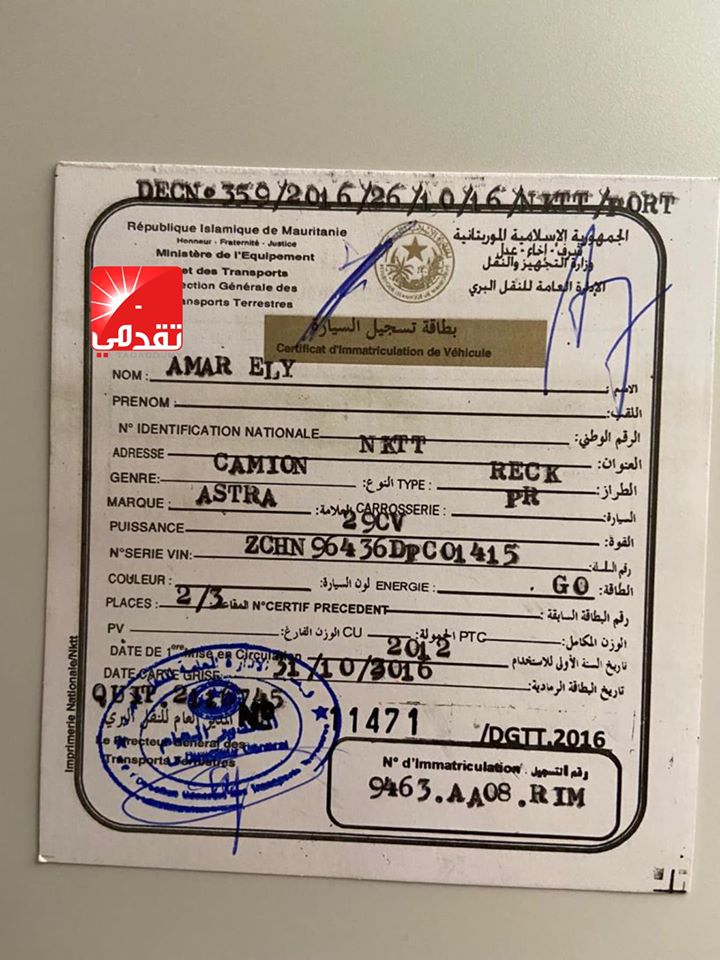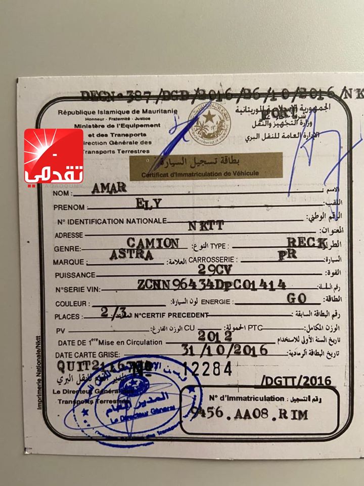 تم تسريب تقرير يشكف معلومات موثوقة عن مجموعة السيارات و الشاحنات التي يملكها ولد عبد العزيز و أفراد أسرته، و تفاصيل أكثر مما تم تداوله يوم أمس، و صور و بطاقات رمادية باسم شركة ولد امصبوع ASTRA.