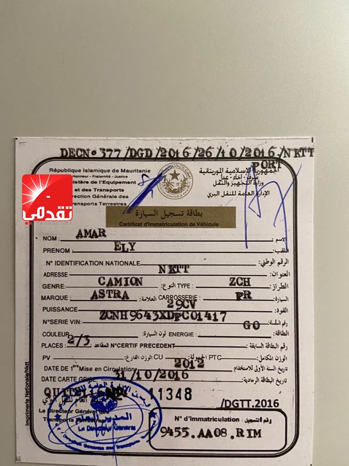 صور مخازن جديدة لسيارات هذه بطاقاتها الرمادية مملوكة لولد عبد العزيز وأفراد أسرته