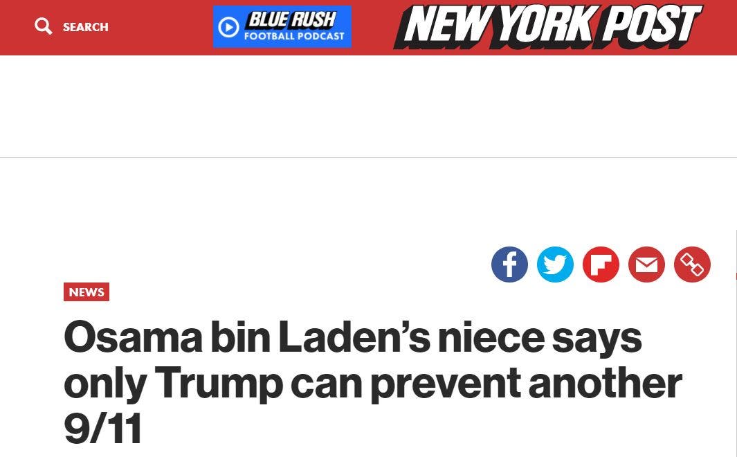 هجوم آخر من طراز 11 سبتمبر قد يكون قاب قوسين أو أدنى إذا تم انتخاب المرشح الديمقراطي جو بايدن رئيسًا، وفقا لتحذيرات نور بن لادن، ابنة أخي أسامة بن لادن، زعيم تنظيم القاعدة السابق والعقل المدبر لهجوم 11 سبتمبر الإرهابي بالولايات المتحدة الأميركية.