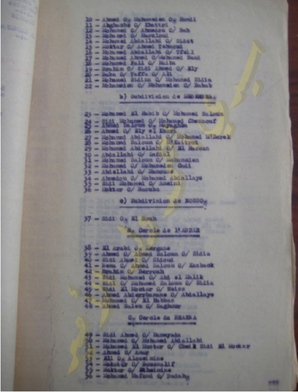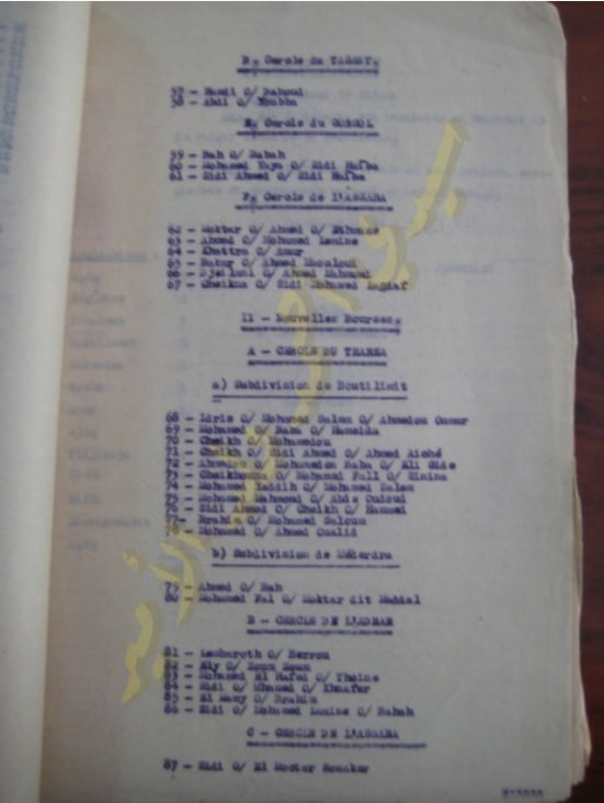 لائحة التلامذة الممنوحين في ست دوائر موريتانية سنة 1937(وثائق)