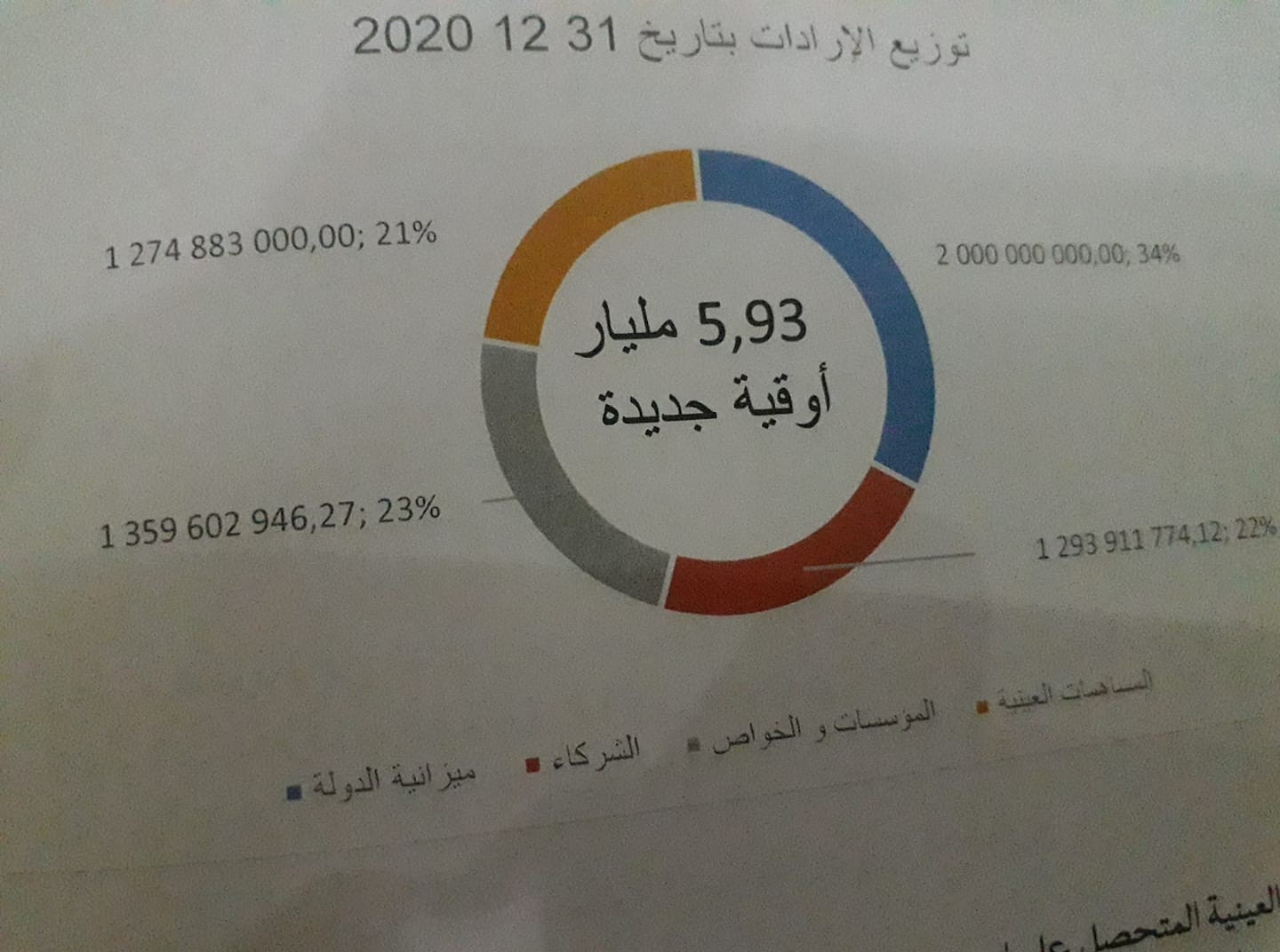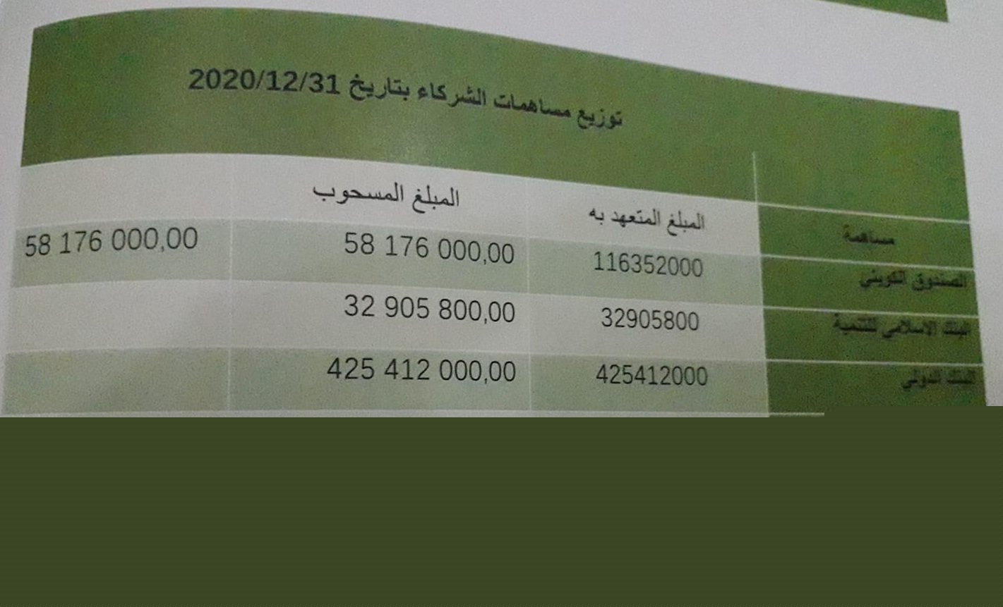 الجدول التالي يبين توزيع هذه المساهمات مع تحديد المبالغ المتعهد بها وتلك التي سحبت بالفعل (المبالغ في الجدول بالأوقية الجديدة).