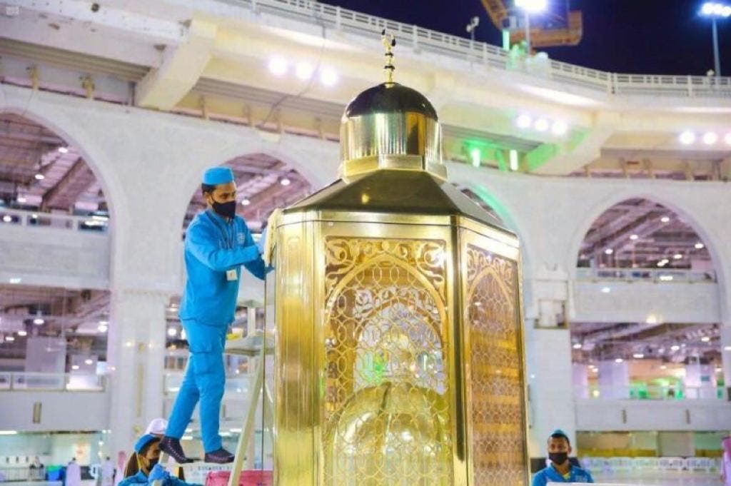 وتقوم شؤون الحرمين بأعمال التطهير والتلميع للإطار الخارجي لمقام إبراهيم -عليه السلام- وتشمل الأعمال الهيكل المعدني الخارجي مع جميع التفاصيل، إضافة إلى فوانيس حِجر إسماعيل.