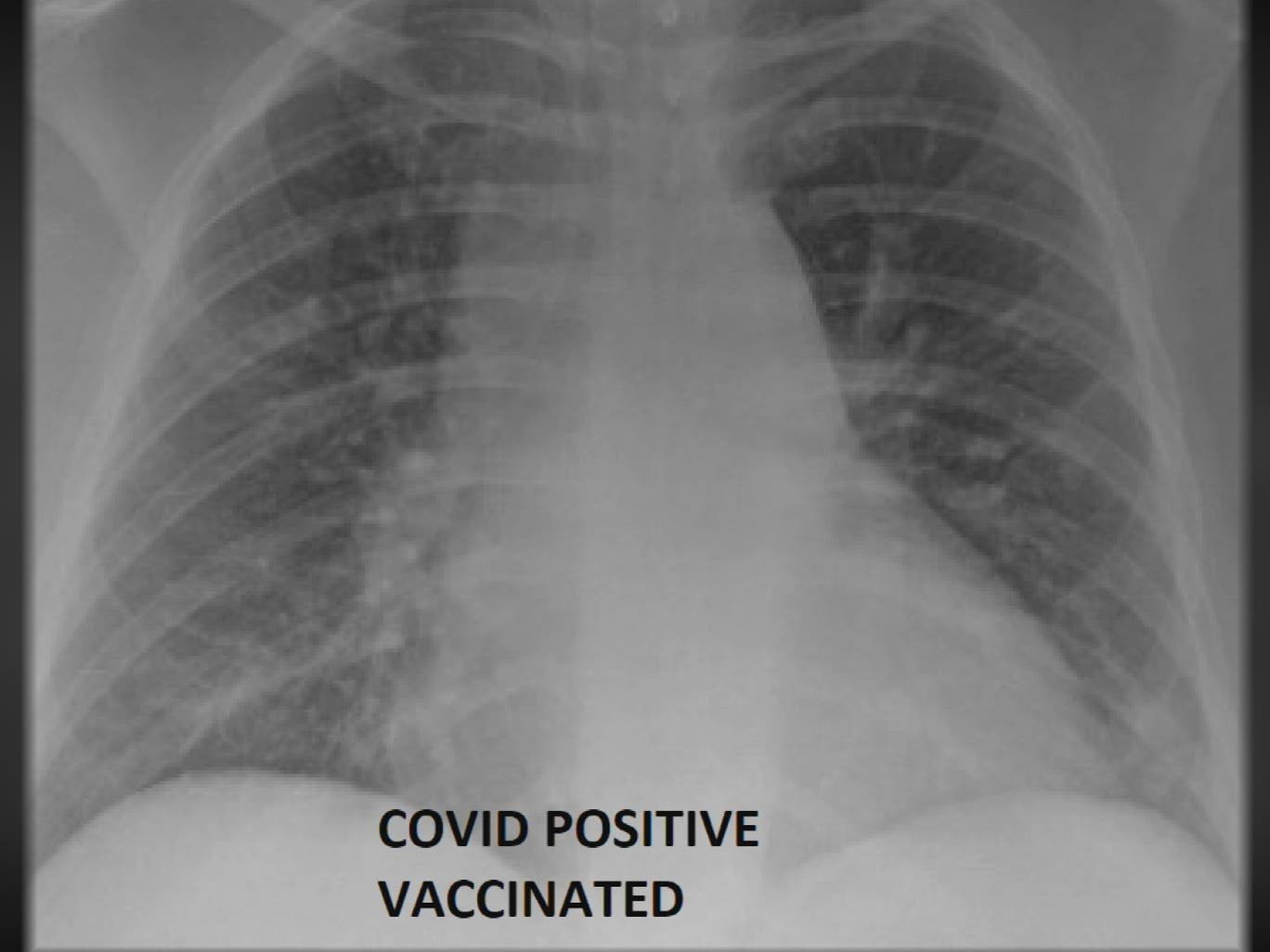 وتعد صورة الأشعة السينية للشخص الذي تم تطعيمه والمصاب بفيروس كورونا حالة اختراق نادرة، فقد أصيب أقل من 1% من الأشخاص الذين تم تلقيحهم، وأولئك الذين يصابون في أغلب الأحيان لديهم أعراض خفيفة وقد لا يحتاجون للذهاب إلى المستشفى. ولا يعاني البعض من أي أعراض أو قد يشعرون وكأنهم مصابون بنزلة برد عادية.