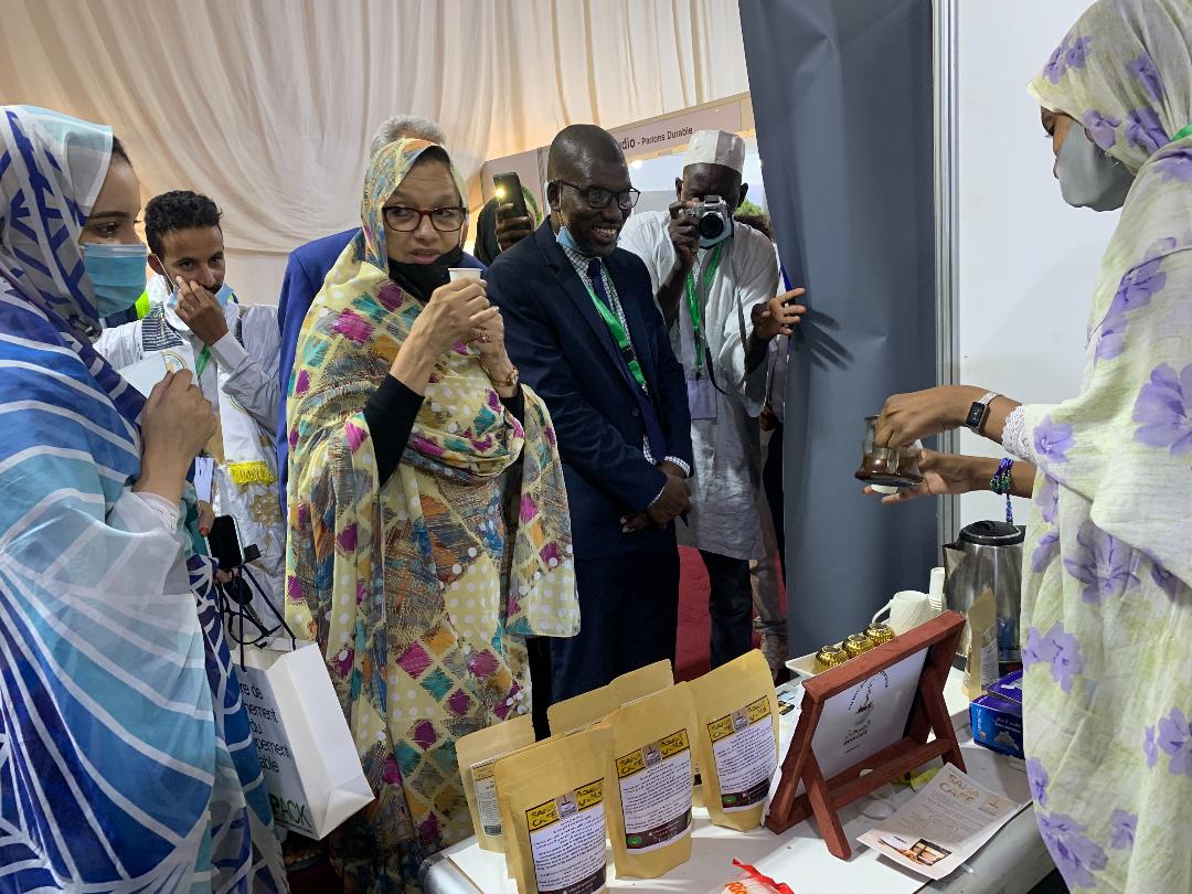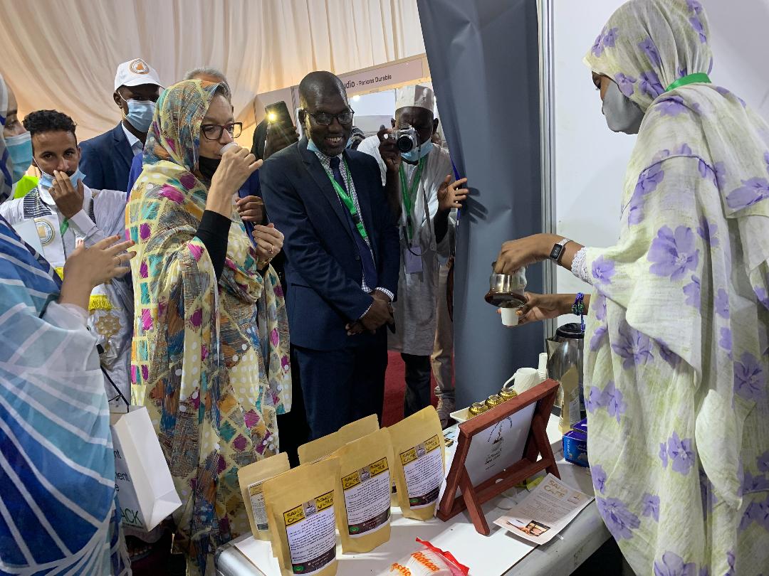 تميزت بشكل لافت في المعرض المنظم في 25 و 26 و 27 أكتوبر المنصرم في قصر المؤتمرات بالعاصمة نواكشوط من طرف وزارة البيئة و التنمية المستدامة بالتعاون مع بعض الشركاء الاقليمين و الدوليين، علي هامش اعمال ورشة للإعلام والتحسيس والتأهيل حول التشغيل الأخضر لصالح النساء والشباب في منظور الانتقال نحو الاستدامة البيئية.