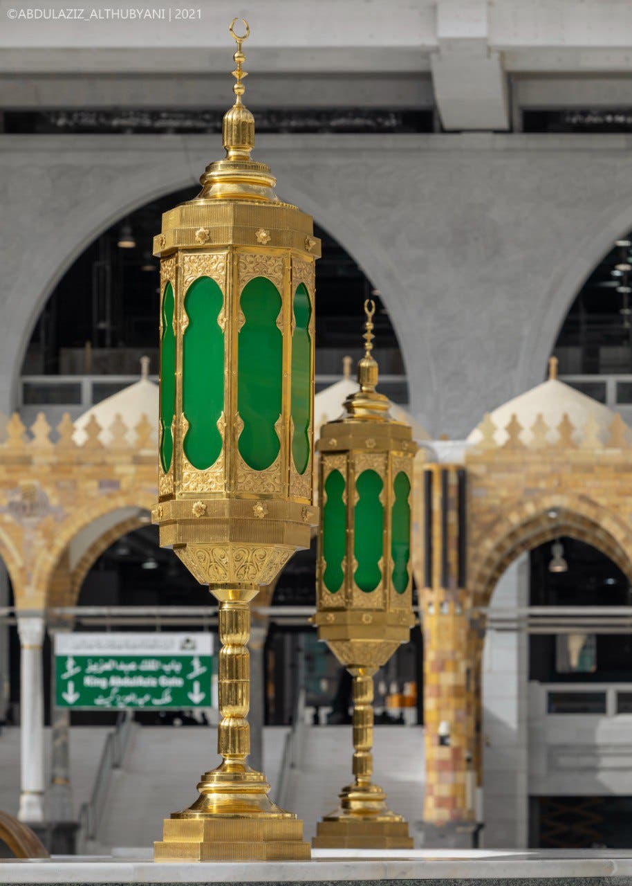 وثّق المصور السعودي، عبد العزيز الذبياني، أهم المعالم الجمالية في الحرم المكي الشريف في مجموعة مميزة من الصور، والتي تضم الفوانيس والنقوش.